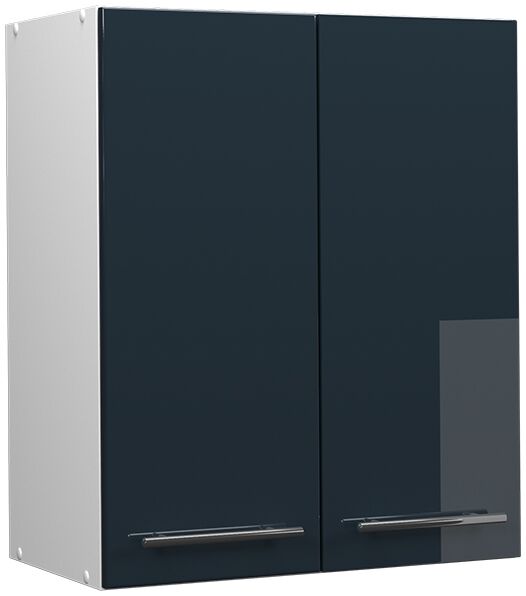 Der Fame-Line Hängeschrank in Dunkelblau Hochglanz ist die ideale Lösung für eine stilvolle und funktionale Küchengestaltung. Mit einer Breite von 60 cm, einer Höhe von 72 cm und einer Tiefe von 34,1 cm bietet er viel Stauraum und optimale Raumnutzung. Die robusten MDF-Fronten und die Soft-Close-Scharnieren sorgen für Langlebigkeit und Komfort. Der Schrank ist aus melaminharzbeschichteter Spanplatte gefertigt und überzeugt durch seine pflegeleichte Oberfläche. **Highlights** - Dunkelblau Hochglanz Front für einen modernen Look - Soft-Close-Scharnieren für sanftes Schließen der Türen - Modular erweiterbar für individuellen Stauraum - Pflegeleichte melaminharzbeschichtete Oberfläche - Stabile Metallgriffe für eine einfache Handhabung **Produkteigenschaften** - Maße (BxHxT): 60 x 72 x 34,1 cm - Innenmaße: 568 x 688 x 305 mm - Material: 16 mm Spanplatte, MDF - Gewicht brutto: 25 kg - Artikelgewicht inkl. Verpackung: 22,3 kg - Artikelgewicht: 20,32 kg **Lieferumfang** - Küchenhängeschrank als Bausatz - Montageanleitung - Montagematerial - Dekoration nicht im Lieferumfang enthalten