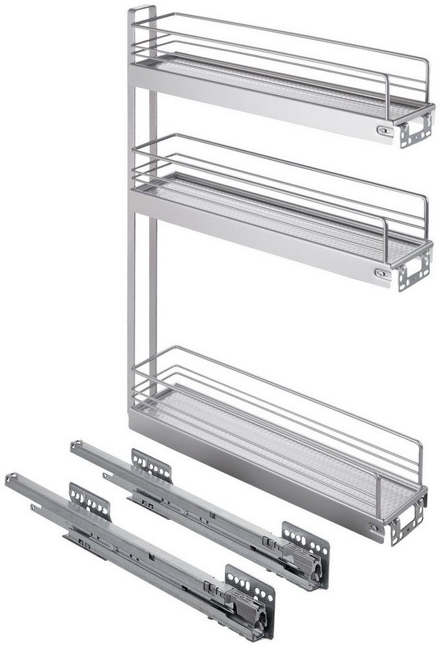 | Name | Kesseböhmer Auszugsunterschrank 15er Unterschrankauszug Classic 90° silbergrau 3-etagig Seitenmontage rechts passend für 15 cm breite Schränke |