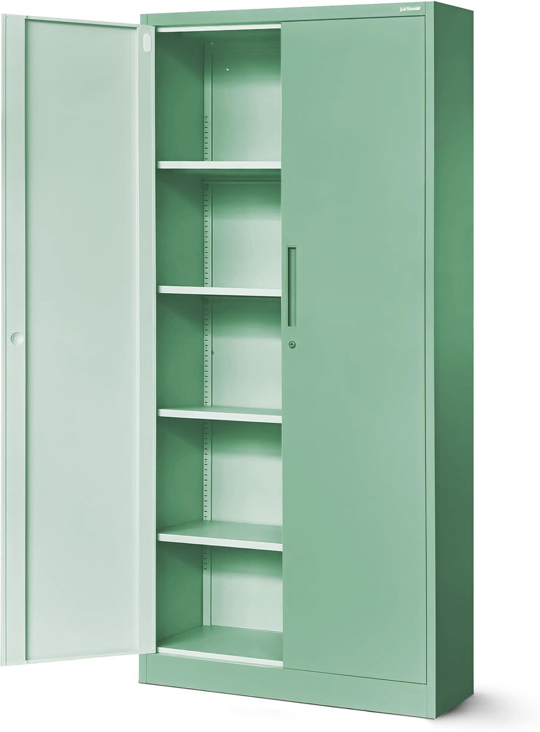 Jan Nowak Aktenschrank C001H Büroschrank Metallschrank Aufbewahrungsschrank 4 verstellbare Fachböden Pulverbeschichtet Abschließbar 195 x 90 x 40 cm (Pastellgrün)