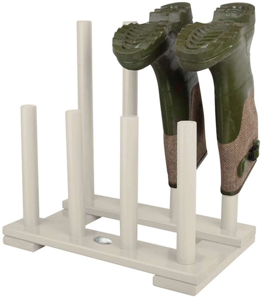 Dieser Stiefelhalter CF48W von Esschert Design wird eine ausgezeichnete Lösung für die Lagerung schmutziger Stiefel sein. Er wurde für 4 Paar Stiefel entworfen und wird dabei helfen, ihre urprüngliche Form zu behalten. * Abmessungen: 41,8 x 26 x 41,9 cm (L x B x H) * Material: Kiefernholz * Farbe: weiß * Für 4 Paar Stiefel * Lieferung erfolgt ohne Stiefel