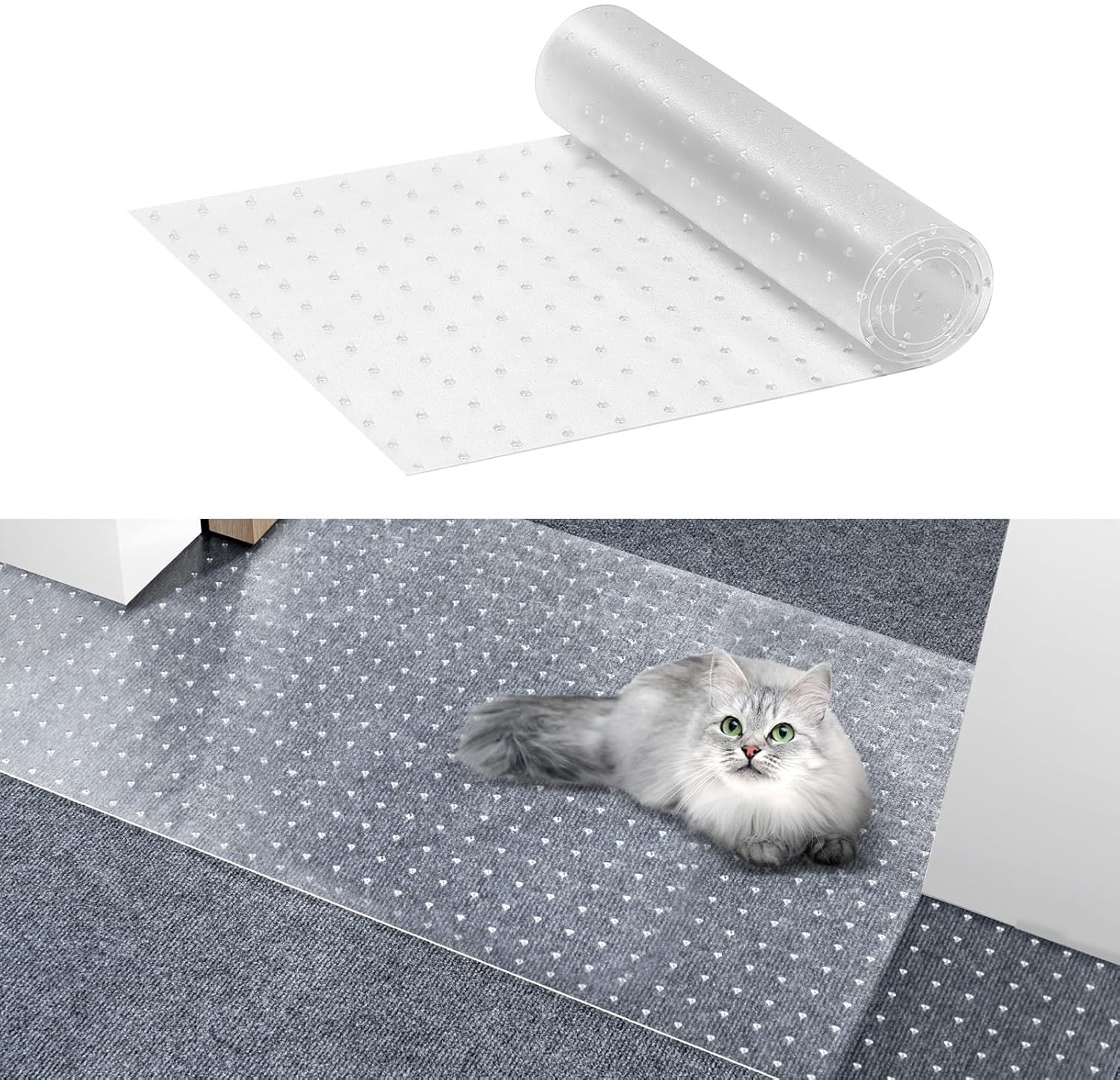 in Möbel & Accessoires: TierbedarfVEVOR Teppichschutz für Haustiere 38,1x1,22 m, kratzfester PVC-Katzenteppichschutz für den Türrahmen, rutschfeste Katzenkratzschutzmatte, leicht zuschneidbarer Kunststoff-Teppichkratzstopper