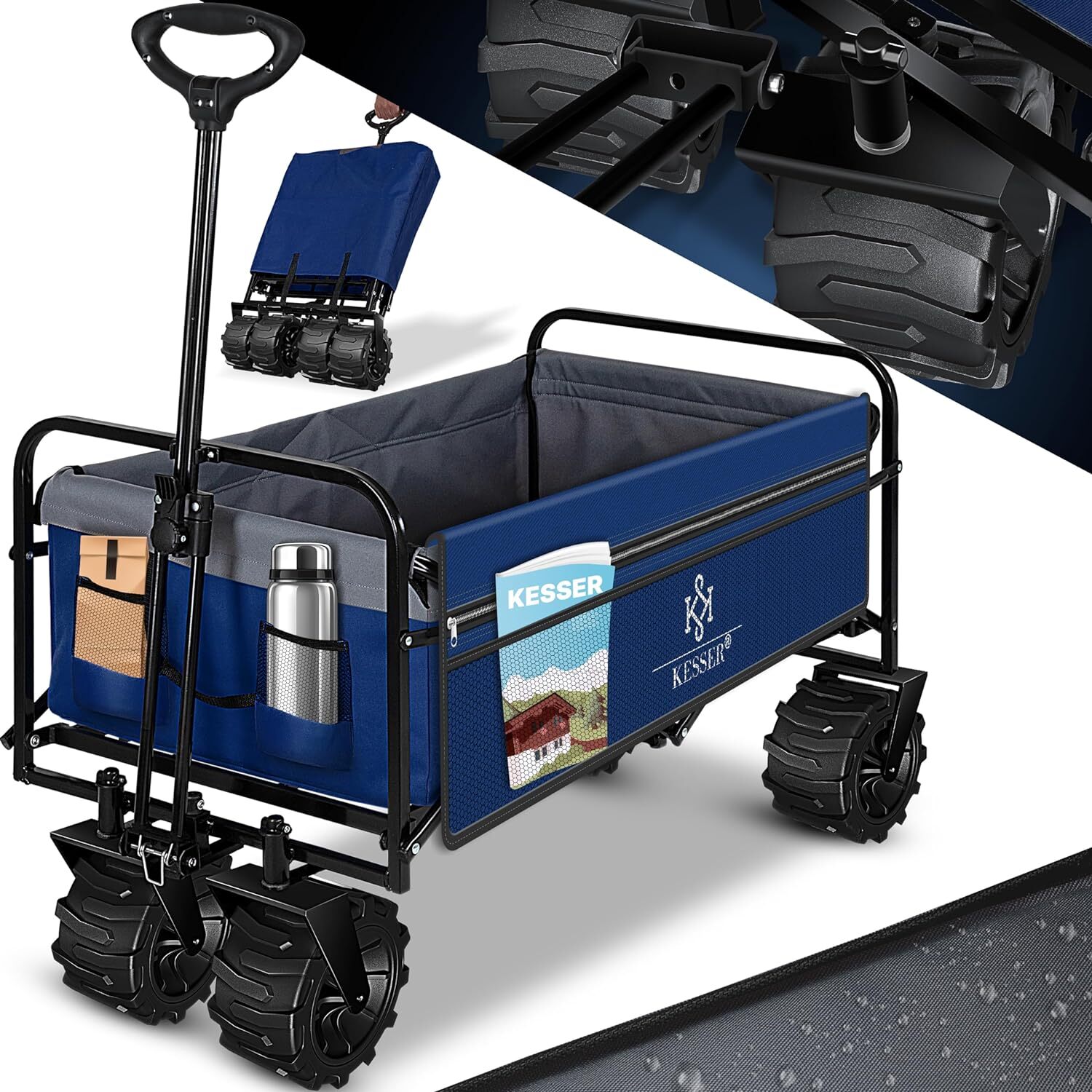 in Möbel & AccessoiresKESSER® Bollerwagen faltbar mit Breite Reifen Handwagen Transportkarre Gerätewagen | inkl. 2 Netztaschen | klappbar | Kunststoff-Reifen | bis 150 kg Tragkraft transportwagen Gartenanhänger Blau/Grau