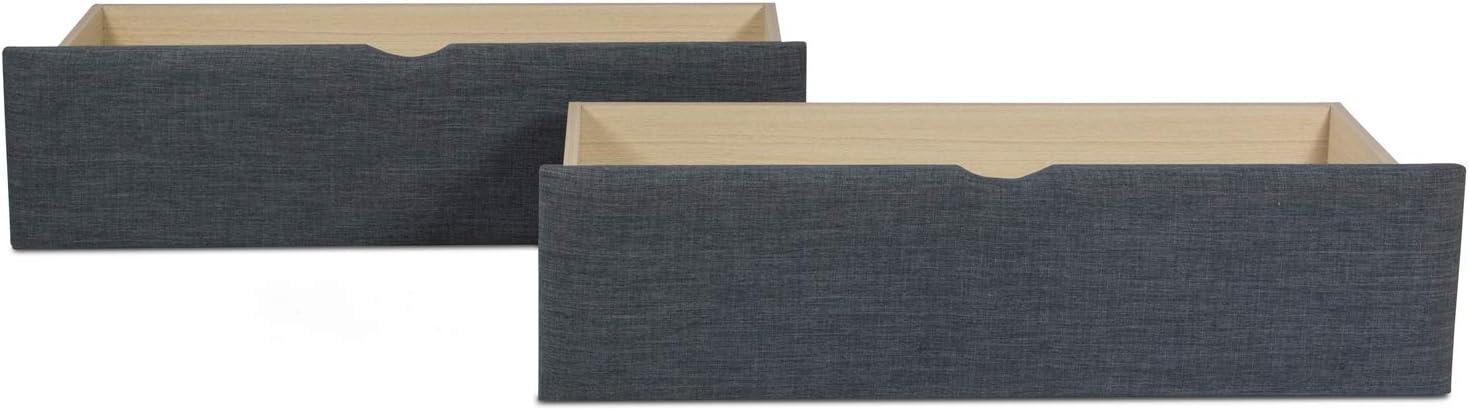Produktbeschreibung Praktisches Bettkastenset in Anthrazit (Dunkelgrau) bestehend 2 einzeln nutzbaren Unterbettkommoden für zusätzlichen Stauraum unter dem Bett in Ihrem Schlafzimmer. Die 2 großen stabilen Schubkästen sorgen für Ordnung und bieten Platz für Bettwäsche, Kissen, Decken, Kleidung und andere Utensilien. Die Bettschubladen sind beidseitig mittels leichtgängigen Rollen unter dem Bettgestell einfach ausziehbar. Der Stoff ist mit einer hochwertigen und edlen Webstruktur versehen. Das Set passt optimal zur Erweiterung von unserem Polsterbett 140x200 in Anthrazit (Artikel1883). Details • 2 ausziehbare Bettkästen auf Rollen frei unter dem Bett im Schlafzimmer stellbar • mit hochwertigem dunkelgrauen Polsterstoff bezogen • 2 Schubladen passen sehr gut nebeneinander unter das Doppelbett • praktische kleine Einkerbung an der Frontseite als Griff zum leichten hervorziehen • ideale Aufbewahrungsbox für Bettzeug, Kleidung und anderes Bettzubehör wie Decken, Kissen Material und Farbe • Bettkasten Stoff Polsterbezug: Anthrazit, Webstruktur erkennbar, 100 % Polyester • Rahmen der Bettschubläden: MDF-Holz, Natur Maße • Innenmaß je Schublade (Bx Tx H): 92 x 37 x 15 cm • Außenmaß je Bettkasten (Bx Tx H) 99 x 37 x 26 cm • Materialstärke Schubfach: 1,5 cm Lieferumfang • 2 Stück Unterbettkästen mit Aufbauanleitung • Dekoration und Bett sind nicht im Lieferumfang enthalten Lieferzustand • zerlegt verpackt, Montage erforderlich •