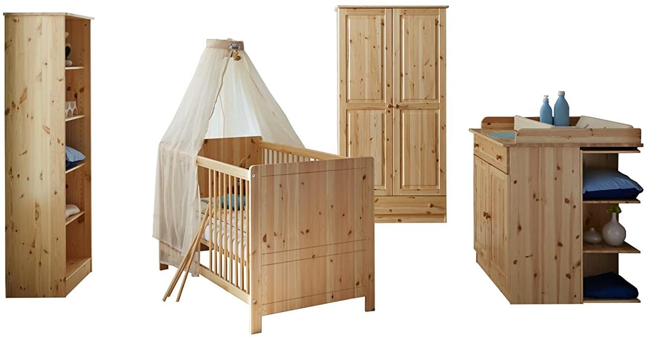 | Name | Ticaa 'Moritz' 4-tlg. Babyzimmer-Set Kiefer, natur, aus Bett 70x140 cm, Wickelkommode inkl. Anstellregal, Kleiderschrank und Standregal |