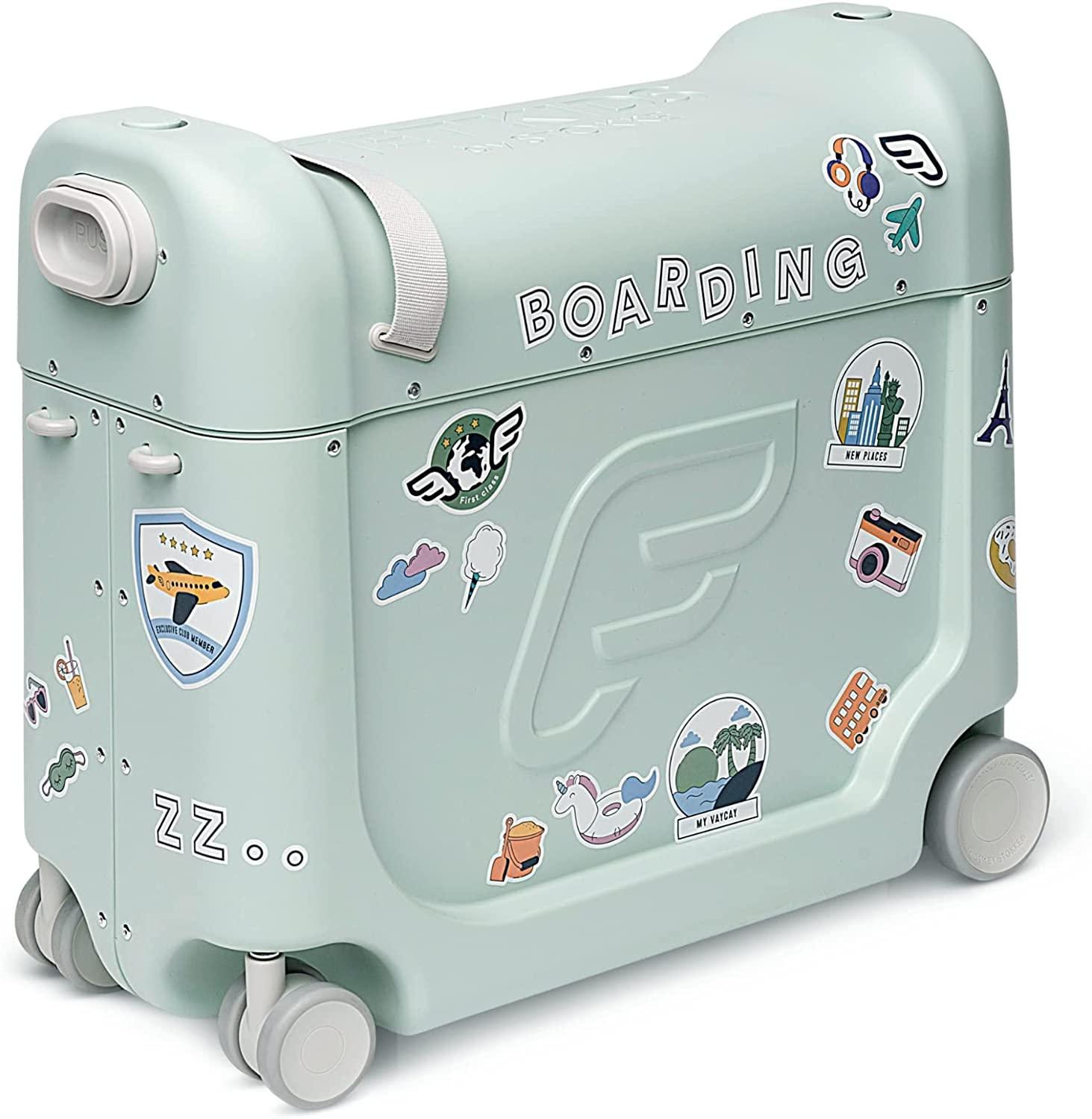 Die Stokke® JetKids™ BedBox® 2.0 Green Aurora ist ein multifunktionaler Reisekoffer für Kinder. Mit nur 5 Schritten verwandelt sich der Flugzeugsitz in ein komfortables Kinderbett. Die Oberseite des Koffers kann als Fußstütze oder Bett genutzt werden. Eine bequeme und waschbare Matratze ist im Lieferumfang enthalten. Der Koffer kann von Kindern ab 3 Jahren bis zu einem Gewicht von 35 kg genutzt werden. Er kann als Laufauto verwendet oder gezogen werden. Der verstellbare Gurt ermöglicht es, den Koffer über der Schulter zu tragen und das Bett im Flugzeug zu sichern. Die Stokke® JetKids™ BedBox® 2.0 verfügt über Rollen, eine Aufhängung und ein Volumen von 20 Litern. **Highlights** - Verwandelt den Flugzeugsitz in ein komfortables Kinderbett - Kann als Ride-On-Kinderkoffer verwendet werden - Waschbare Matratze und Aufkleber im Lieferumfang enthalten - Stauraum im Deckel - Von den meisten Fluggesellschaften akzeptiert **Produkteigenschaften** - Geeignet für Babys, Kleinkinder und Kinder von 2 bis 7 Jahren - Maximale Belastung: 35 kg - Fassungsvermögen: 20 Liter - Vorderräder mit Drehfunktion und Federung **Lieferumfang** - Stokke® JetKids™ BedBox® 2.0 Green Aurora - Waschbare Matratze - Aufkleber