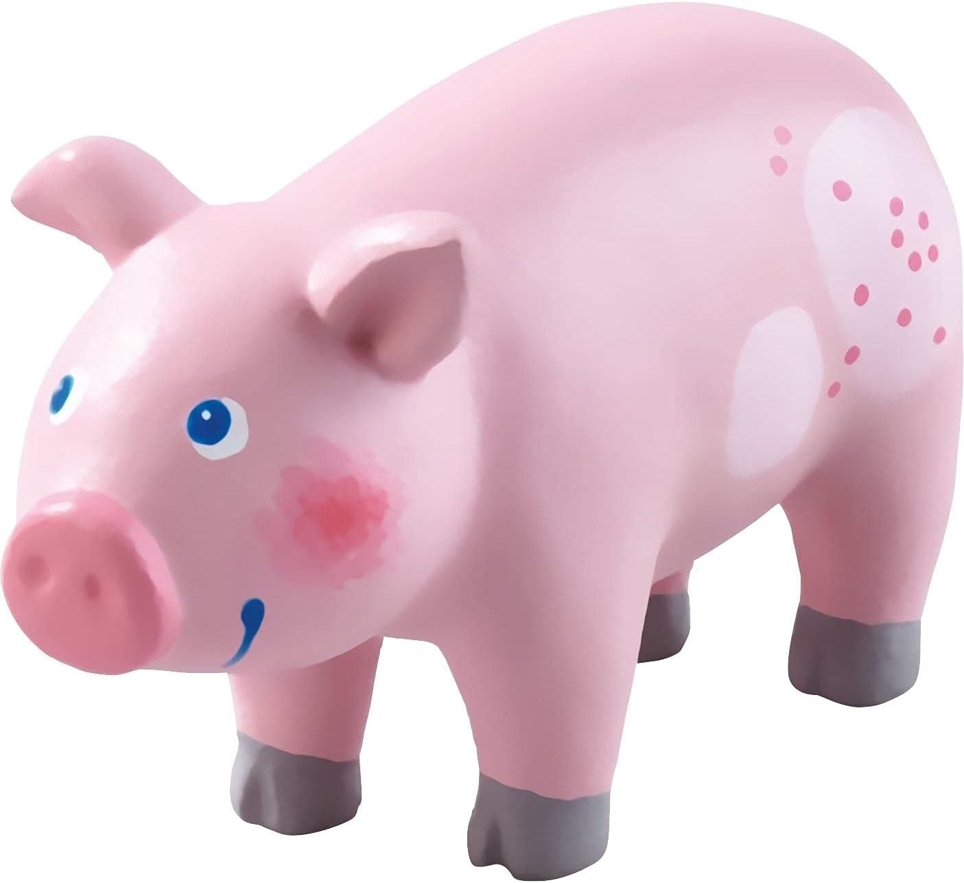 Haba Little Friends - Schwein Bauernhoftiere sind für einen Bauernhof unverzichtbar: Sie liefern wichtige Rohstoffe und Grundnahrungsmittel wie Wolle, Milch und Fleisch. Das ist bei der Bauernfamilie aus der HABA-Serie der Little Friends nicht anders. Zu den Stalltieren, die sich Bauer Franz und Bäuerin Johanna auf ihrem großen Bauernhof halten, zählen eine Kuh mit ihrem Kalb, ein Schwein mit seinem Ferkel und Pferde. Das rosa Little Friends – Schwein von HABA beginnt genüsslich zu grunzen, wenn es frisches Futter erhält. Es bringt die Bauernkinder Nils, Vreni und Casimir immer zum Lachen, wenn es sich in einer Schlammpfütze suhlt. Für alle, die mehr über die Little Friends erfahren wollen, gibt es Vorlese-Geschichten, DIY-Inhalte, Informationen für die Eltern und Spiele in der Themenwelt