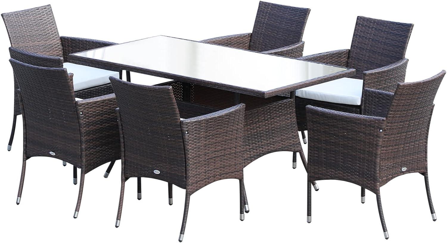 | Name | Outsunny 7 tlg. Polyrattan Gartenmöbel Rattan Gartenset Sitzgruppe Garnitur Essgruppe inkl. Kissen 6 Personen Braun+Creamweiß 150 x 80 x 74 cm |