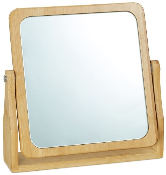 Beschreibung Der Kosmetikspiegel aus Bambus 10026127 ist ein praktischer Begleiter für Ihr tägliches Styling. Mit der 360 Grad drehbaren Funktion und der individuell einstellbaren Sichthöhe haben Sie stets alles im Blick. Der rechteckige Spiegel aus Bambus passt mit seiner natürlichen Optik perfekt in verschiedene Wohnstile. **Highlights** - 360 Grad drehbarer Spiegel für flexible Winkeleinstellung - Große Spiegelfläche mit eckigem Rahmen - Natürlicher Look dank Bambusmaterial - Platzsparend und ideal für Badezimmer, Ankleidezimmer und Schlafzimmer - Leichtgewicht mit nur ca. 1,2 kg **Produkteigenschaften** - Größe H x B x T: ca. 27 x 26,5 x 7 cm - Größe Spiegelfläche H x B: ca. 22x20,5 cm - Gewicht: ca. 1,2 kg - Material: Bambus, Glas - Farbe: Natur **Lieferumfang** - 1 x Kosmetikspiegel - Dekoartikel sind nicht im Lieferumfang enthalten