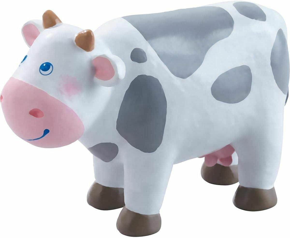 HABA - Little Friends - Kuh. Bauernhoftiere sind für einen Bauernhof unverzichtbar: Sie liefern wichtige Rohstoffe und Grundnahrungsmittel wie Wolle, Milch und Fleisch. Das ist bei der Bauernfamilie aus der HABA-Serie der Little Friends nicht anders. Zu den Stalltieren, die sich Bauer Franz und Bäuerin Johanna auf ihrem großen Bauernhof halten, zählen eine Kuh mit ihrem Kalb, ein Schwein mit seinem Ferkel und Pferde. Die geduldige Little Friends Kuh von HABA hat ein schönes weißes Fell mit grauen Flecken. Ihr rosa Euter wird täglich von Bäuerin Johanna gemolken, um Milch für die Bauernfamilie zu bekommen. Für Kinder ab 3 Jahren.