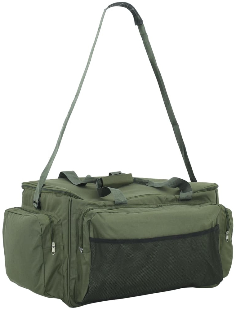 Egal, ob beim Angeln, Wandern oder einer anderen Aktivität, diese vielseitige Angeltasche eignet sich ideal, um all deine Sachen zu transportieren. * Viel Stauraum: Die Angeltasche verfügt über Innen- und Außentaschen, in denen Zubehör wie Akkus, Ladegeräte, Speicherkarten, Mobiltelefone usw. aufbewahrt werden können. * Wasserdicht und langlebig: Diese Angeltasche besteht aus 600D-Oxford-Gewebe mit PVC-Beschichtung und ist daher auf Langlebigkeit ausgelegt. Zudem wird sie samt einer wasserdichten Hülle für unerwartete Wetterbedingungen geliefert. * Organisiert: Die Angeltasche verfügt über eine isolierende Trennwand, um deine Angelgeräte und Zubehör übersichtlich zu verstauen. * Mehrere Tragemöglichkeiten: Die Angeltasche verfügt über einen Tragegriff und einen verstellbaren Schultergurt, sodass du sie als Umhängetasche, Schultertasche oder Handtasche tragen kannst. * Vielseitig einsetzbar: Diese Angeltasche eignet sich ideal für Angeln, Wandern, Reisen, Trekking, Radfahren oder andere Aktivitäten. * Farbe: Dunkelgrün * Material: 600D Oxford-Gewebe mit PVC-Beschichtung * Gesamtabmessungen: 57 x 35 x 34 cm (L x B x H) * Schulterriemen-Länge (max.): 145 cm * Mit isolierender PEVA-Trennwand * Wasserdicht