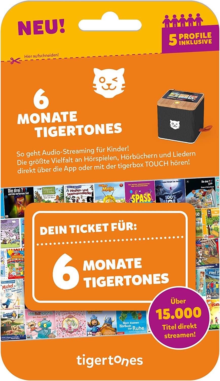 Mit dem tigertones-Ticket wird Streaming zum Kinderspiel! Für 6 Monate erhältst Du unbegrenzten Zugriff auf mehr als 15. 000 Hörspiele, Hörbücher und Kinderalben und kannst deine Lieblingshelden auf ihre Abenteuer begleiten und in neue, spannende Welten eintauchen! Das tigertones-Ticket ist am besten erlebbar mit der tigerbox TOUCH! Lieferumfang: 1 tigerticket - 6 Monate Riesige Auswahl: Hörspiele, Hörbücher und Kinderlieder mit vielen bekannten Kinderhelden im Stream Bis zu 5 Profile einrichten und in tigertones sowei auf der tigerbox TOUCH nutzen Einstellmöglichkeiten zu Themen, Alter, Lieblingsheldinnen und -helden Volle Kostenkontrolle: Unbegrenzter Zugang auf alle Inhalte ohne zusätzliche Kosten Sorgfältig geprüfte Inhalte Absolut Werbefrei: Keine Kaufanreize für eine sorgenfreie Nutzung für Kinder - ganz ohne einen Erwachsenen Funktioniert nur in Kombination mit der tigerbox TOUCH (separat erhältlich) Altersempfehlung: 4-12 Jahre Hersteller: Tiger Media Hersteller Art. Nr. : 4213