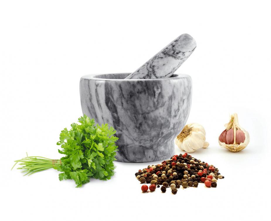 - Hochwertiges Mörser-Set aus Marmor, das Qualität und Stil verkörpert und Ihrem Kücheninterieur Eleganz verleiht