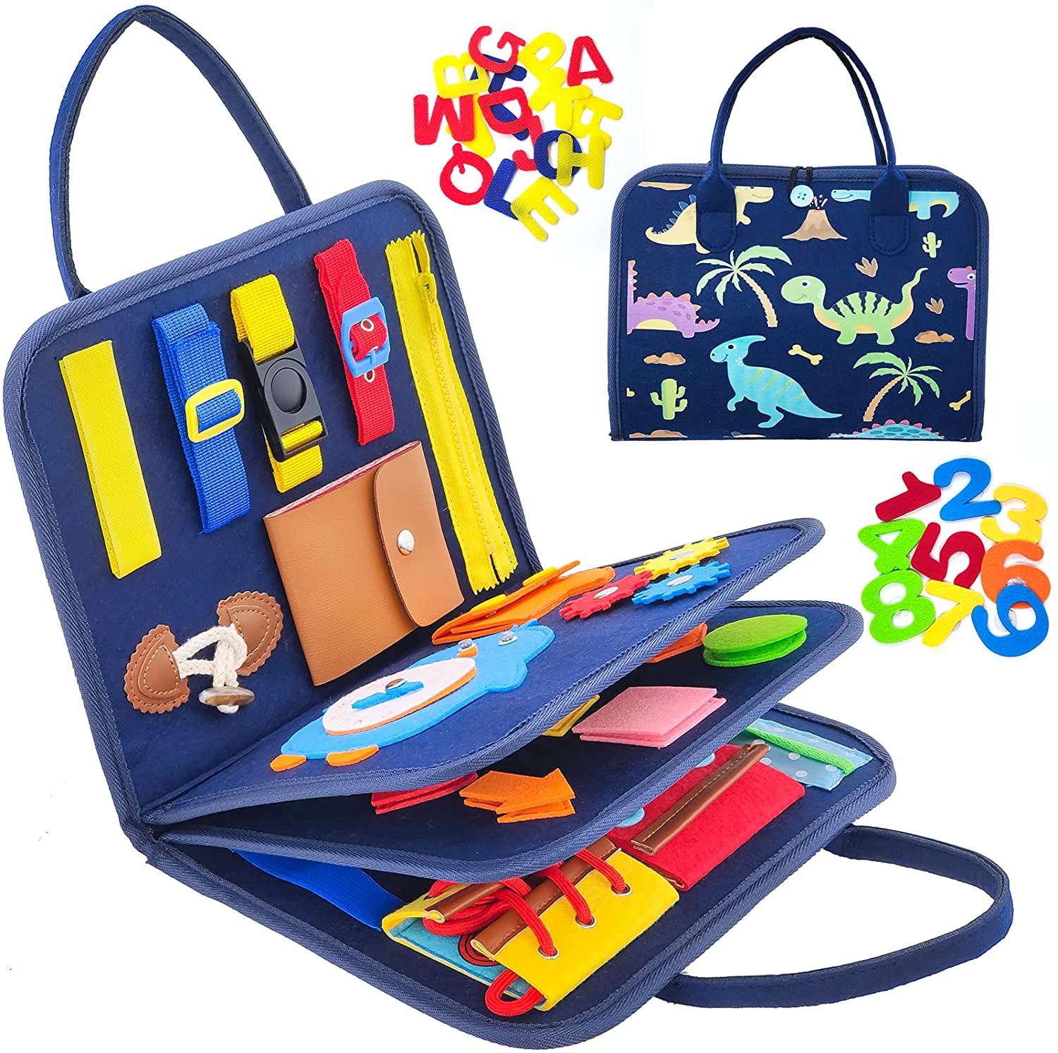 【4-Lagiges Sensory Board】Es gibt 20 verschiedene Arten von Grundfähigkeiten, darunter Schnallen, Knöpfe, Reißverschlüsse, Taschen, Schnürsenkel, Uhren und mehr sowie abnehmbare Grafiken, englische Buchstaben und Zahlen. Bieten Sie eine Vielzahl von sensorischen Spielen an, um den unterschiedlichen Bedürfnissen von Kindern gerecht zu werden. 【Montessori Spielzeug】Der effektivste Weg zu lernen ist, Spiele zu spielen. Dieses Activity Board kann Kindern helfen, sich selbst anzuziehen, praktische Fähigkeiten zu fördern, die Wahrnehmung von Grafiken und Farben zu verbessern und die Unabhängigkeit von Kindern zu trainieren. 【Sicheres Material】Das beschäftigte Brett ist aus weichem Filz ohne scharfe Kanten, ungiftig und geschmacksneutral, sicher für Kinderhaut. Flexibler Flip, fällt nicht leicht ab. Gepaart mit leuchtenden Farben kann es die Konzentration der Kinder verbessern. 【Tragbares Design】Leicht und mit einem tragbaren Griff ausgestattet, können Kinder das Spielzeug leicht zum Spielen herausnehmen! Auch super für den Outdoor-Einsatz. 【Lernspielzeug】Dieses Lernspielzeug ist perfekt für neugierige Jungen und Mädchen, und Eltern können ihre Kinder beim Erlernen grundlegender Fähigkeiten begleiten. Das perfekte Geschenk für ein wachsendes Kleinkind!, Hersteller: Withosent