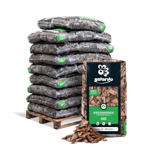 - Entdecken Sie die GALAMIO Kiefernrinde, ideal als dekorativer Mulch für Garten und Landschaftsgestaltung