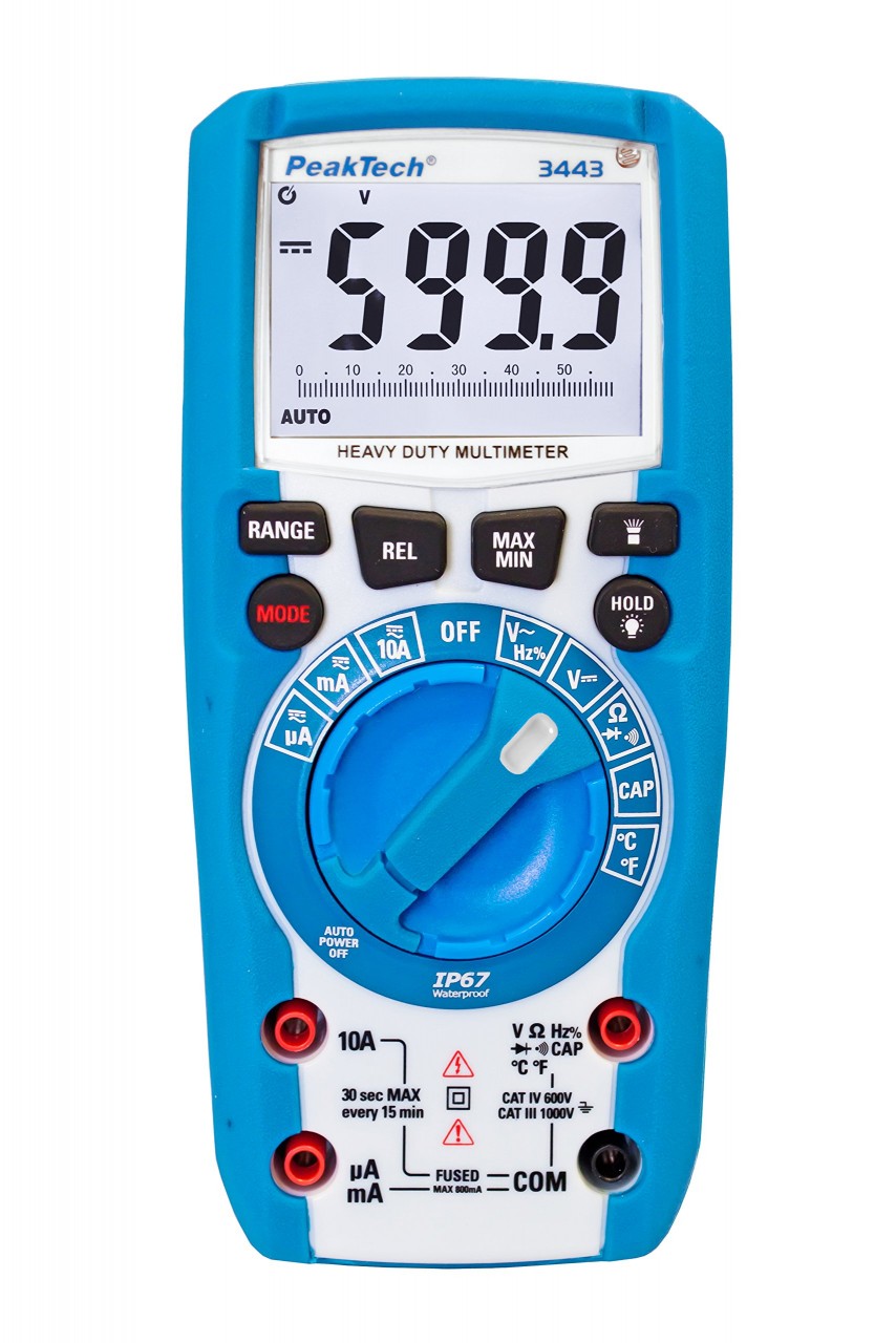 - Das PeakTech 3443 ist ein digitales Multimeter mit 6000 Counts, das für höchste Beanspruchung im Heavy-Duty Design konzipiert wurde.