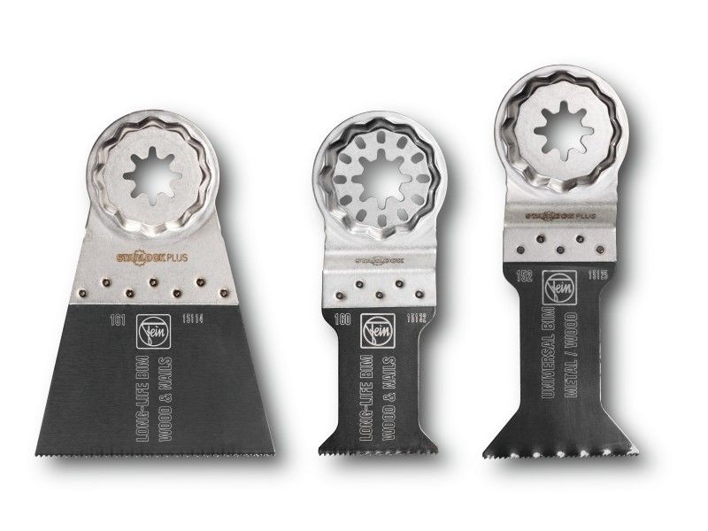 - Lieferumfang: je 1 E-Cut Long-Life Sägeblatt 35 mm und 65 mm breit sowie 1 E-Cut Universal-Sägeblatt 44 mm breit