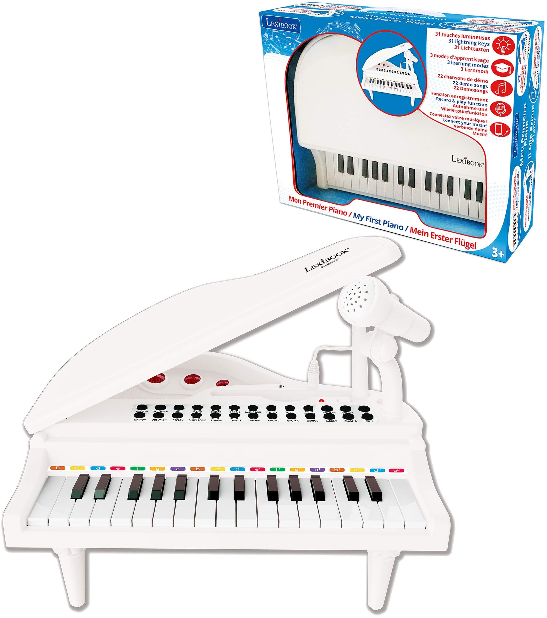 in Mikrofone für KinderLexibook K731 Erster Flügel für KinderLeuchttasten, Lernmodus, 29 x 31 cm, Tempo-und Lautstärkeregelung, 3+, weiß