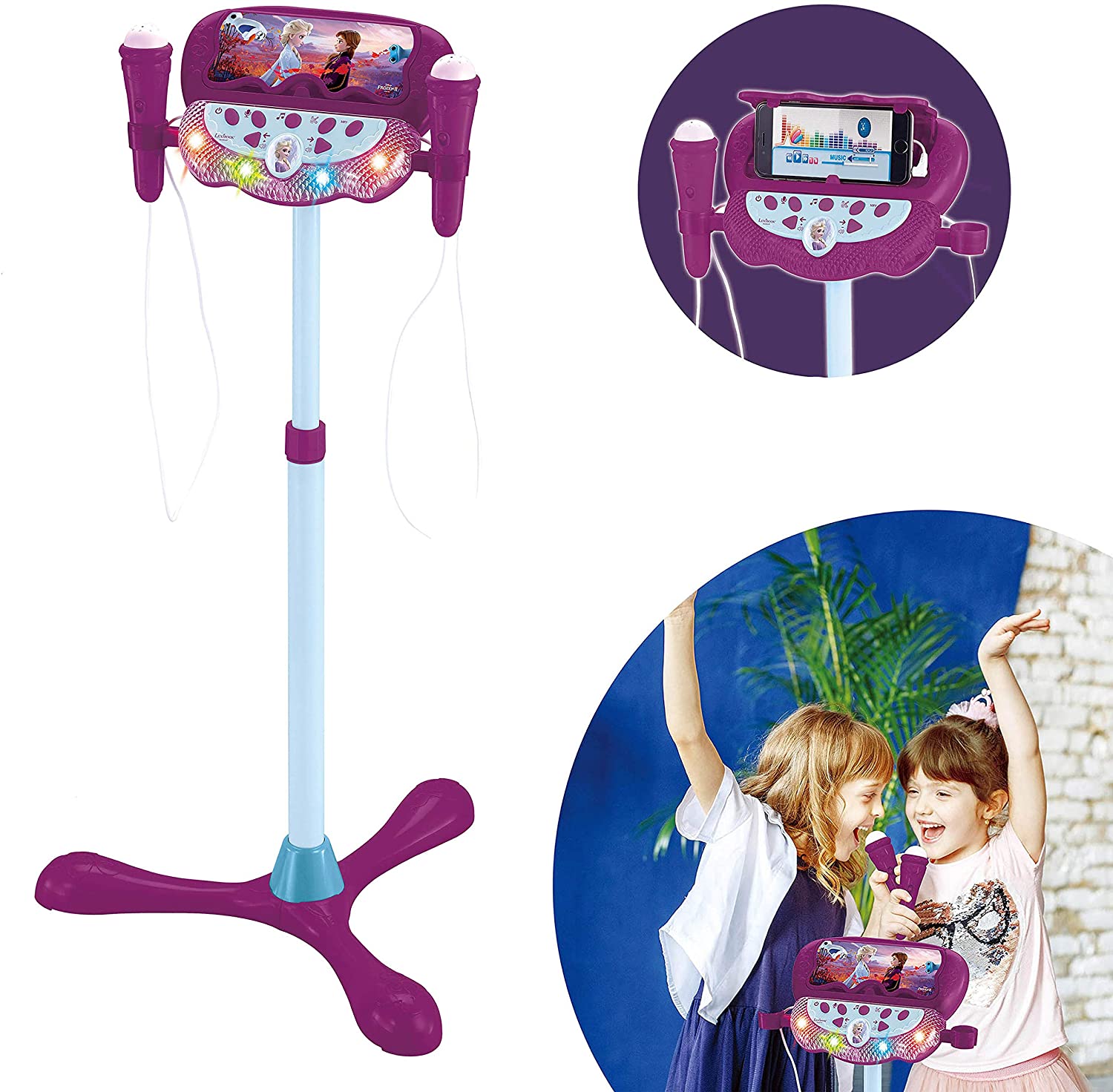 in Mikrofone für KinderLexibook S160FZ Disney Frozen Die Eiskönigin Standlichtlautsprecher für Kindermusikalisches Spiel, verstellbare Höhe, lichteffekte, 2 Mikrofone inklusive, MP3-Stecker, Audiokabel-Stecker, lila/blau