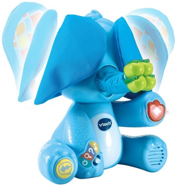 Torööö! Der kleine Elefant mag Obst! Niedlicher Elefant, der den Rüssel und die Ohren bewegt und Früchte mit seinem Rüssel erkennt. Mit 5 Zubehörteilen in verschiedenen Farben: Erdbeere, Zitronen, Orangen, Äpfel, Trauben. Steckt man die verschiedene Obstsorten auf den Rüssel des Elefanten, erkennt, benennt und zählt er diese er nennt zudem ihre Farben. Bunte Ohren aus Stoff, mit denen der Elefant lustig wackeln und seine Augen bedecken kann. Leuchtende Pfotentaste löst lustige Sätze, Lieder und Geräusche aus. Weitere Taste löst Inhalte/Fragen zu Tieren und Tiergeräuschen aus. 3 Spielmodi: Entdeckermodus, Suchmodus (Kind soll bestimmtes Obst finden), Musikmodus (passende Lieder zu den aufgesteckten Obstsorten). Lerninhalte: Obstsorten, Farben, Zählen, Tierstimmen, Musik. 12 gesungene Lieder. Kindersicheres Batteriefach und Abschaltautomatik. Demobatterien sind enthalten Warnhinweis: Es liegen uns keine Warnhinweise des Herstellers/Lieferanten vor. Bei Sortimenten und Großpackungen gilt der angegebene Preis pro Stück. Eine Auswahl ist nur bedingt möglich!