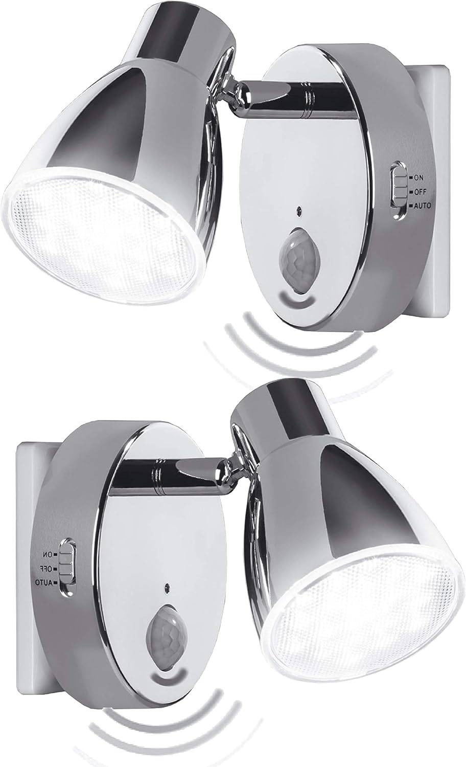 in NachtlichterTRANGO LED Steckdosenleuchte2er Set 2635-028 LED Sensor Nachtlicht *MILO* mit Bewegungssensor & Automatikfunktion in Chrom Sicherheitslicht 230V Steckdosenlampe, Wandlampe, Orientierungslicht, Nachtlampe, Steckdosenlicht