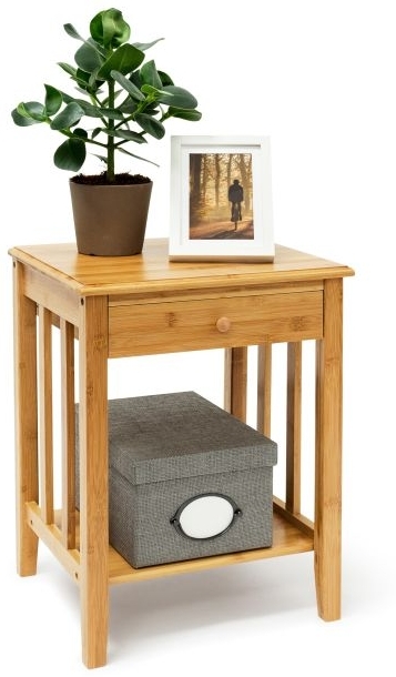 Der Relaxdays Bambus Beistelltisch mit Schublade ist ein hochwertiges Möbelstück, das sich ideal als Nachtkonsole oder Beistelltisch eignet. Mit den Abmessungen von ca. 51,5 x 40,5 x 30,5 cm passt er perfekt in jedes Zuhause. Der Tisch aus robustem, feuchtigkeitsresistentem Bambus bietet ein großes Schubfach und zwei Ablageflächen für Ihre Gegenstände. Der Aufbau ist dank der mitgelieferten Teile und Montageanleitung einfach und schnell. **Highlights** - Hochwertiger Beistelltisch aus Bambus - Vielseitig einsetzbar als Nachtkonsole oder Beistelltisch - Schlichtes und elegantes Design - Leichter Aufbau mit mitgelieferten Teilen und Montageanleitung - Geeignet für Räume mit hoher Feuchtigkeit **Produkteigenschaften** - Abmessungen: ca. 51,5 x 40,5 x 30,5 cm (H x B x T) - Material: Bambus - 1 großes Schubfach (ca. 5 x 31,5 x 31,5 cm) - 2 große Ablageflächen - Gewicht: ca. 6,3 kg **Lieferumfang** - 2 Seitenteile - Obere und untere Ablagefläche - Schubfach in Einzelteilen - Deutsche Anleitung - Montagematerial - Dekoartikel nicht im Lieferumfang enthalten