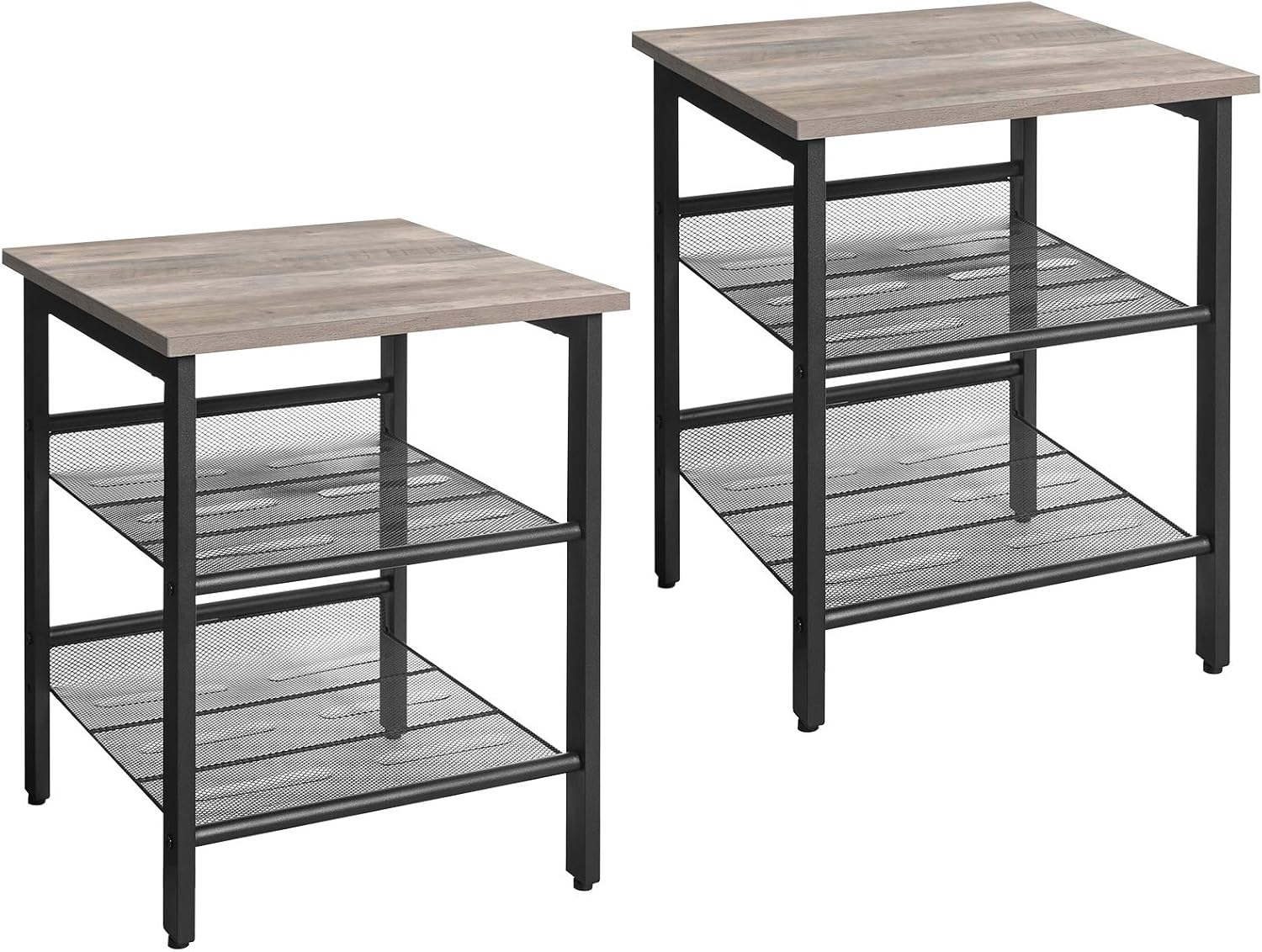 | Name | Vasagle Nachttische, Beistelltisch-Set, 2er-Set Sofatische, kleine Couchtische mit verstellbaren Gitterablagen, Wohnzimmer, Schlafzimmer, Flur, stabil, Industrie-Design, Greige-schwarz LET024B02 |