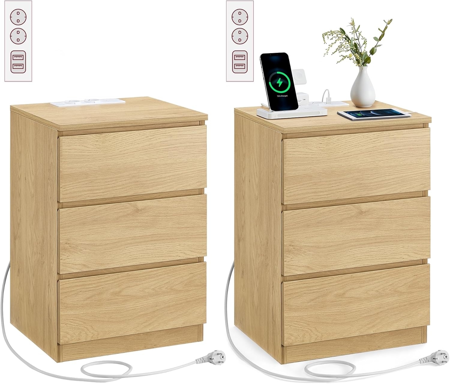 | Name | VASAGLE Nachttisch mit Steckdosenleiste, 2er Set, Beistelltisch, 3 Schubladen, 2 AC-Steckdosen, 2 USB-A-Anschlüsse, Wohnzimmer, Schlafzimmer, Arbeitszimmer, modern, strohgelb LETDE831Y70 |