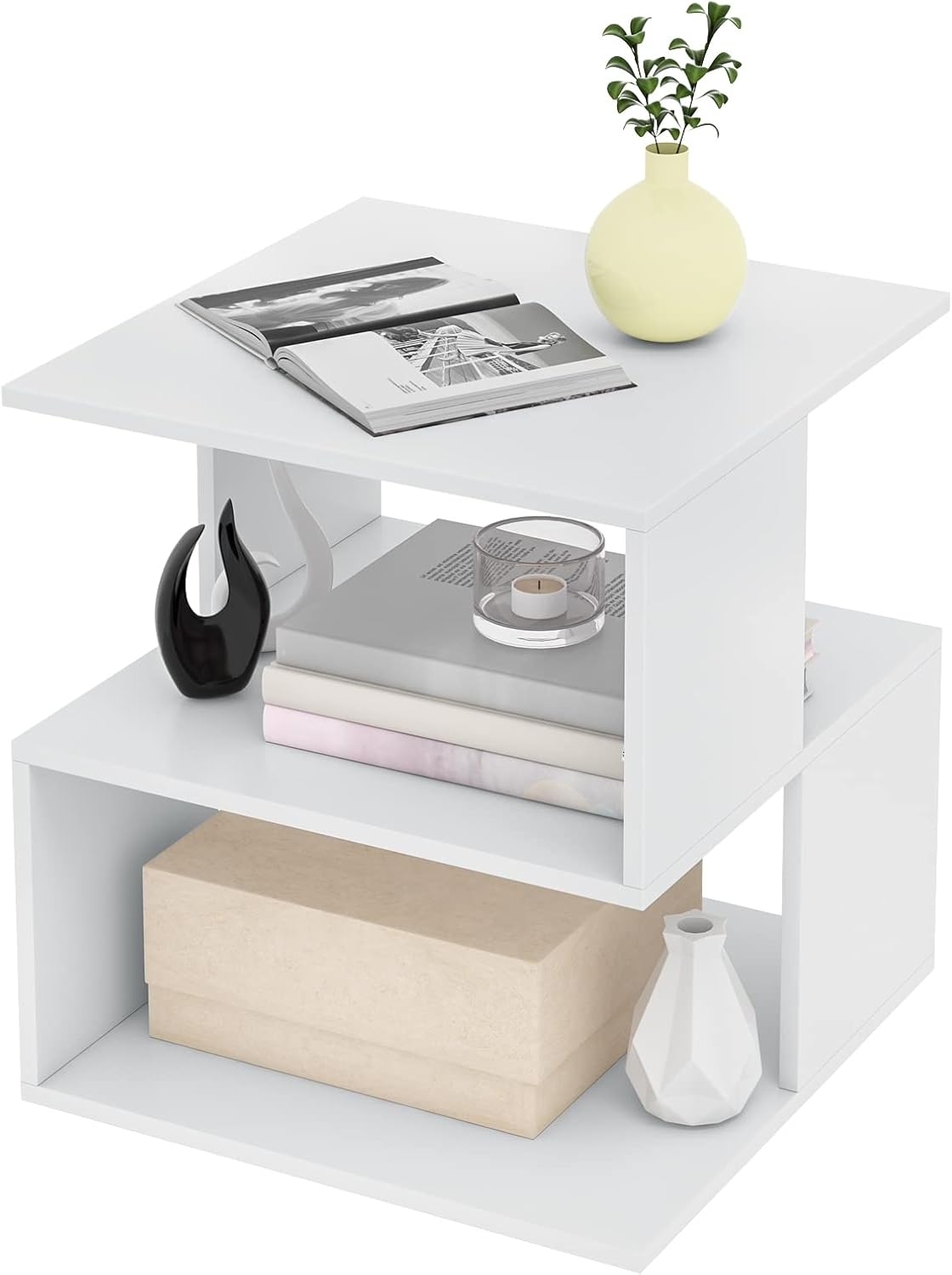 EUGAD Nachttisch (1-St), Sofatisch mit 2 Ablagen, 40x43,5x40 cm, Weiß