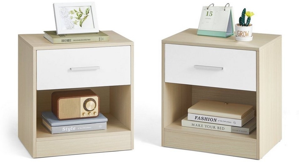 in NachttischeVasagle Nachttisch2er Set, Beistelltisch, mit Schublade, Griff, offenes Fach, Couchtisch, für Schlafzimmer, Wohnzimmer, naturbeige-klassikweiß