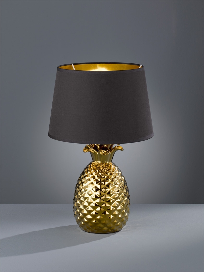 | Name | Keramik Tischleuchte, Textil schwarz gold, H 43 cm, PINEAPPLE |