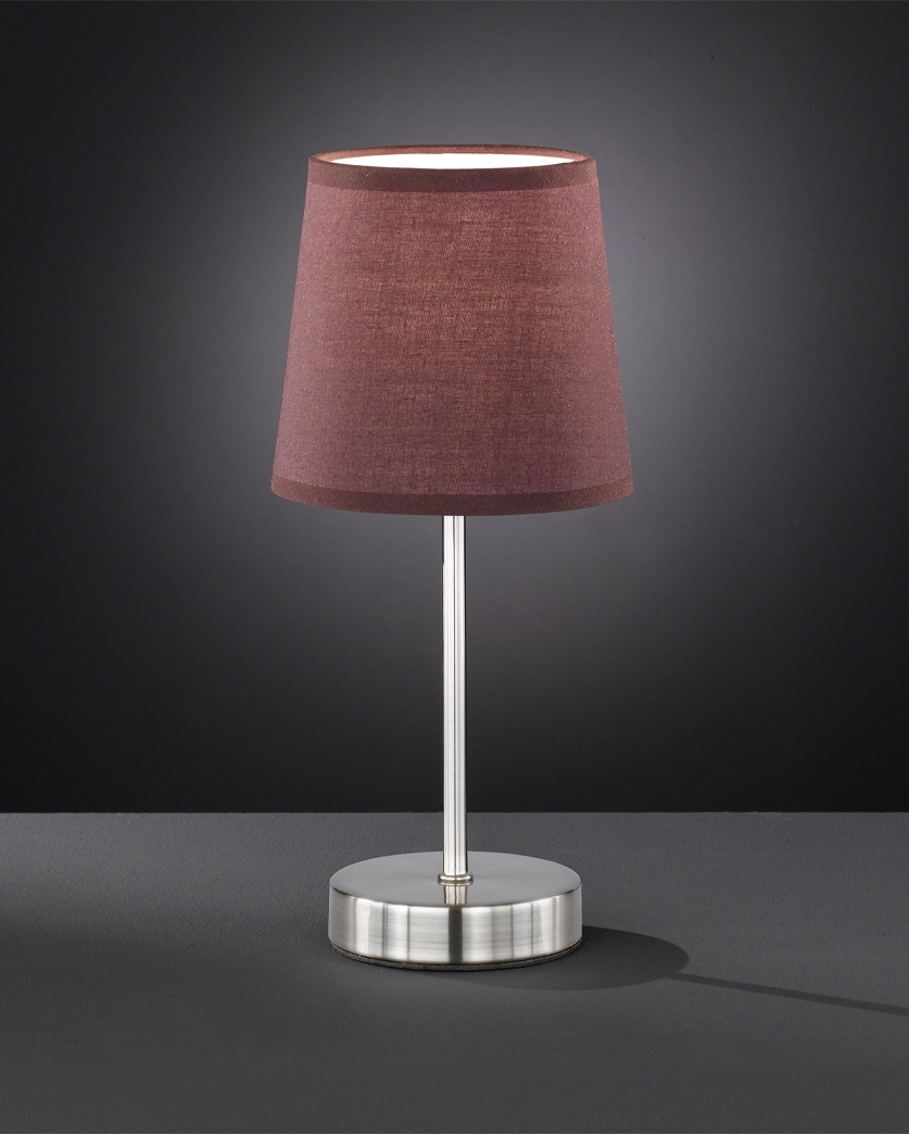 Beschreibung Diese Tischleuchte überzeugt durch ihr klassisches Design aus einem nickel-mattem Fuß in Kombination mit einem braunem Textilschirm. Besonders gut eignet sich die Tischleuchte für Ihr Schlafzimmer auf dem Nachtisch oder im Wohnzimmer als Leseleuchte. Die E14 Fassung ist geeignet für ein Leuchtmittel mit einer maximalen Leistung von max. 40 Watt. Das Leuchtmittel ist nicht im Lieferumfang enthalten. Details Leuchte • Lampentyp: Tischleuchte • Material: Metall, Textil • Farbe: nickel matt, braun• Schalter im Anschlusskabel • Schutzart: IP20• Schutzklasse: 2 • Durchmesser x Höhe in cm: 14 x 32 • Fassung: 1x E14 • Leuchtmittel nicht enthalten • Leistung Leuchtmittel: 1x max. 40 Watt • Stromversorgung: 230V, 50Hz
