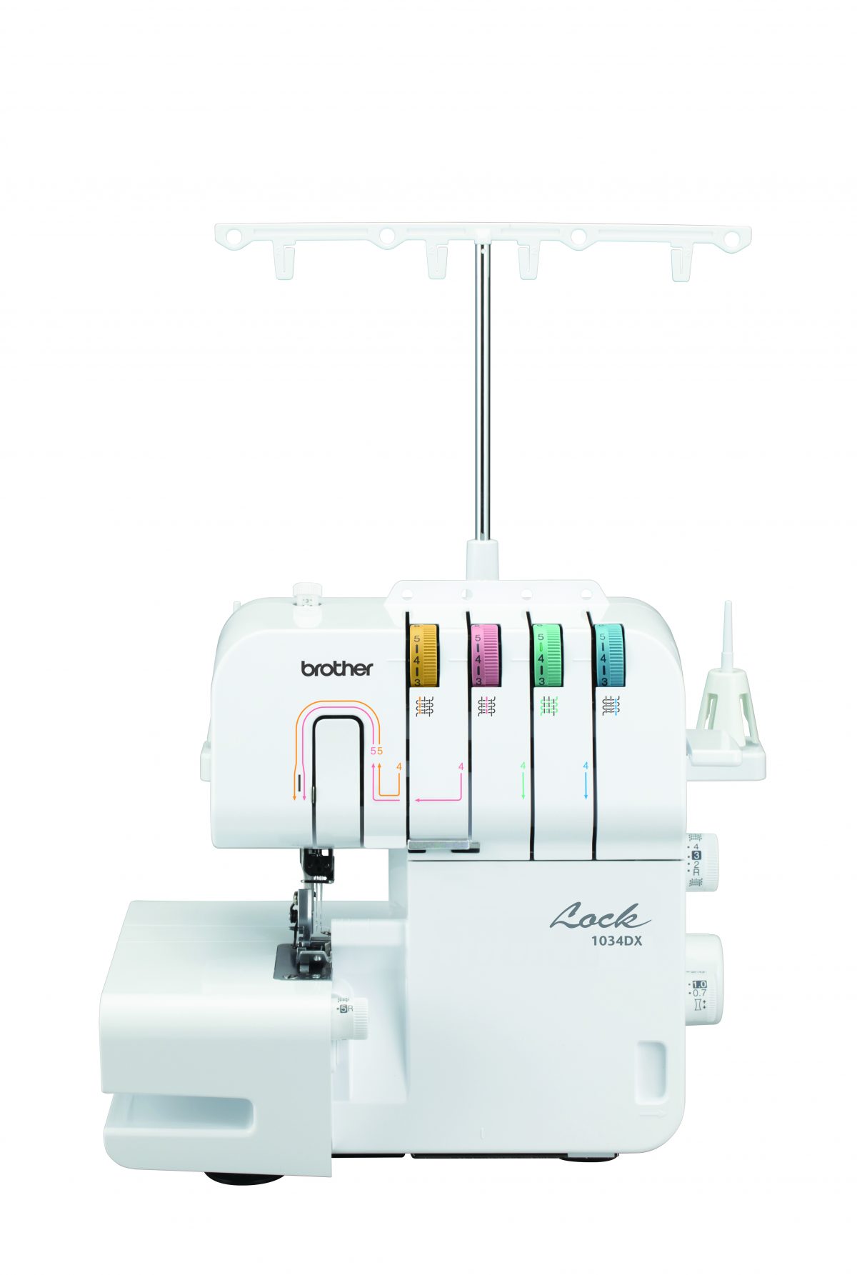 - Die Brother 1034DX Overlock-Nähmaschine bietet die Möglichkeit, Overlockstiche mit 3 oder 4 Fäden zu schneiden und zu nähen.