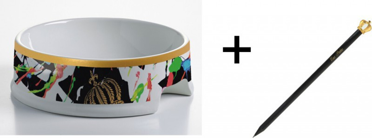 Porzellan Futternapf von Harald Glööckler im Kronendesign, ein wahres Kunstobjekt für Ihren vierbeinigen Freund. Mit einer Höhe von 4,5 cm und einem Durchmesser von 15,5 cm bietet der Napf ein Füllvolumen von 200 ml. Er überzeugt durch exzellente Verarbeitung und ist spülmaschinengeeignet, gefrierschranktauglich, mikrowellenfest und ofenfest. Im Set ist zudem ein edler Bleistift mit Kronendesign von Casa Padrino enthalten. **Highlights** - Porzellan Futternapf von Harald Glööckler - Ein wahres Kunstobjekt - Exzellente Verarbeitung - Spülmaschinengeeignet, gefrierschranktauglich, mikrowellenfest, ofenfest - Edler Bleistift mit Kronendesign **Produkteigenschaften** - Höhe: 4,5 cm - Durchmesser: 15,5 cm - Gewicht: 350 g - Füllvolumen: 200 ml **Lieferumfang** - 1x Porzellan Futternapf - 1x Luxus Bleistift mit Kronendesign - Ausschluss von weiterem Zubehör