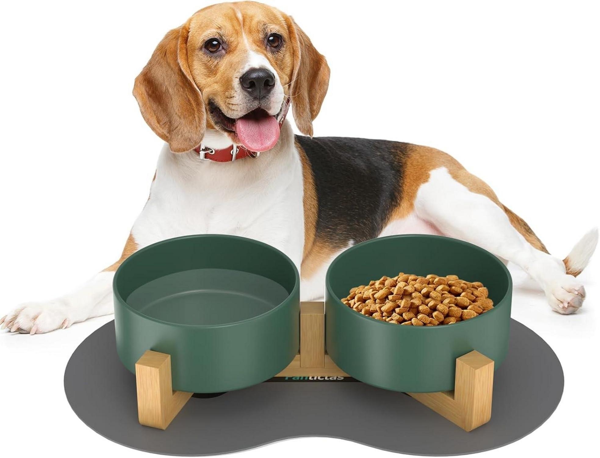 | Name | Doppel 850ml Keramik Hundenapf mit Bambus Ständer und rutschfestem Matte - Grün |