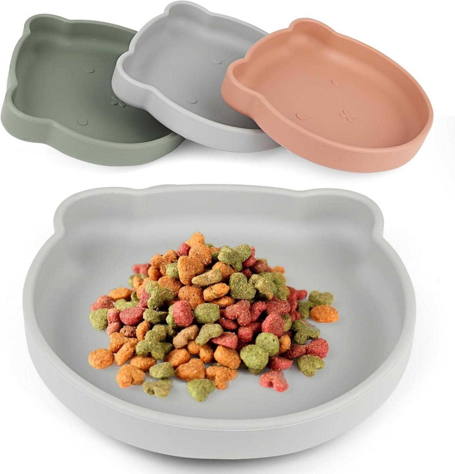 - **Katzenfutter Wasserschale** - Die multifunktionale Futterschüssel Katze kann Trockenfutter, Nassfutter, gefriergetrocknete Lebensmittel usw. aufnehmen und dient auch als Wassernapf. - **Silikon Napf Katze** - Hergestellt aus hochwertigem Silikonmaterial in Lebensmittelqualität, BPA-frei, ungiftig, geruchsneutral und langlebig. - **Saugnapf** - Der Napf Katze Flach ist mit einem Saugnapf an der Unterseite ausgestattet, damit Ihr Liebling in Ruhe fressen kann. - **Trockenfutter und Nassfutter** - Die flache Katzennapf-Form ermöglicht es Ihrer Katze, bequem zu fressen, ohne ihre empfindlichen Schnurrhaare zu stören. - **Leicht zu reinigen** - Die Futternapf Katze Flach ist spülmaschinenfest und schadstofffrei, was die Reinigung und Hygiene erleichtert. Der Katzennapf Flach ist eine ideale Lösung, um Ihre geliebte Katze beim Fressen glücklich zu machen. Dank des integrierten Designs ist der Napf weich und verformt sich nicht leicht. Der multifunktionale Katzennapf kann Nass- und Trockenfutter gleichermaßen gut aufnehmen, sodass Sie flexibel in der Fütterung Ihres Haustieres sind. Das hochwertige Silikonmaterial gewährleistet, dass die Futterschüssel sicher und langlebig ist, sowie frei von schädlichen Chemikalien wie BPA. Die praktische Saugnapfbefestigung an der Unterseite des Napfs sorgt dafür, dass er an Ort und Stelle bleibt, während Ihre Katze genussvoll schlemmt. Mit den Maßen von etwa 17.5 cm Länge, 16 cm Breite und 3 cm Höhe bietet der Katzennapf ausreichend Platz für die Mahlzeiten Ihres Vierbeiners. Die flache Form des Katzentellers erleichtert Ihrer Katze das Fressen, ohne dass ihre Schnurrhaare beeinträchtigt werden. Zudem ist die Futterschüssel leicht zu reinigen, entweder per Hand oder in der Spülmaschine, was Ihnen Zeit und Mühe spart. Gönnen Sie Ihrer Katze ein angenehmes Essenserlebnis mit dem Katzennapf Flach und freuen Sie sich über die praktische Anwendung und die einfache Reinigung dieses hochwertigen Produkts.