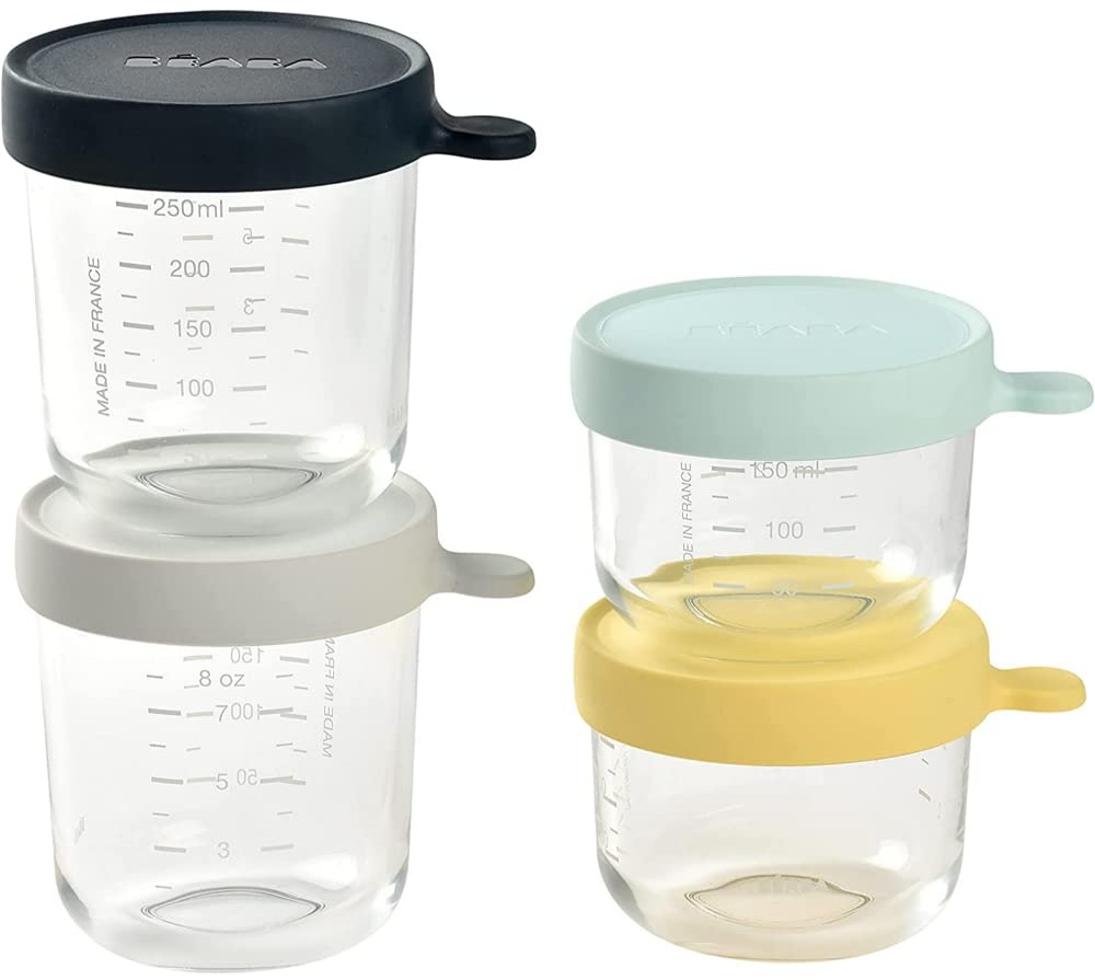 | Name | BÉABA, Set of 4 Extra Resistant Baby Food Storage Glass, Made in France, 100% Airtight, Thermal Shock Resistant, Freezer, Sterilization, Graduation, 2X 150 ml - 2X 250 ml Yellow |