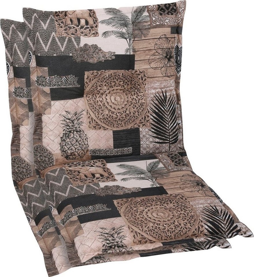 Die GO-DE Sitzauflage (Set, 2 Auflagen) verwandelt Ihre Gartenstühle in gemütliche Sitz- und Ruheplätze. Mit einer Füllung aus Schaumstoff und einem pflegeleichten Oberstoff aus Polyester bietet die Auflage (B x H: 50 x 100 cm) optimalen Sitzkomfort. Sie ist speziell für Gartenstühle mit einer niedrigen Rückenlehne von 52 cm konzipiert. Die Kreissteppungen im Lehnenrücken sorgen für Stabilität, während das Gurthalteband und die seitlichen Bindekordeln eine perfekte Fixierung garantieren. **Highlights** - Füllung aus Schaumstoff mit Vlies für hohen Sitzkomfort - Maße (B x H): 50 x 100 cm - Geeignet für Gartenstühle mit einer niedrigen Rückenlehne von 52 cm - Pflegeleichter und strapazierfähiger Oberstoff aus Polyester - Gurthalteband und seitliche Bindekordeln für optimale Fixierung **Produkteigenschaften** - Kreissteppungen im Lehnenrücken zur Fixierung von Schaumkern und Stoff - UV-beständig für langanhaltende Nutzung - Hochwertige Verarbeitung für dauerhafte Formstabilität - Vielseitig einsetzbar für Garten, Terrasse und Wohnzimmer