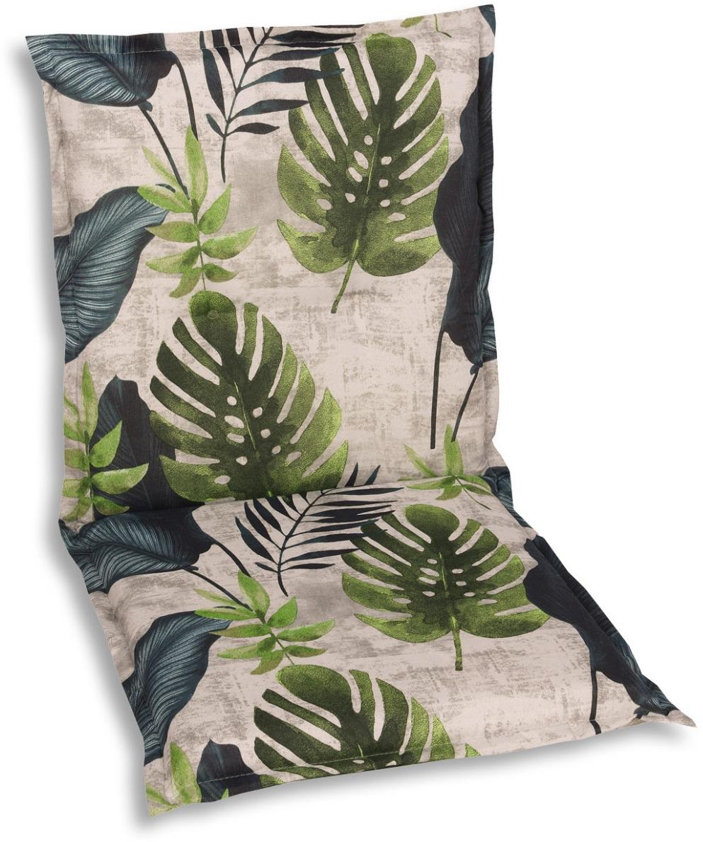 Die GO-DE Niederlehner-Auflage in Grün mit den Maßen 100 x 50 x 7 cm bietet mit hochwertiger Schaum-/Vliesfüllung extra Komfort für Ihre Gartenmöbel. Das moderne Dessin rundet Ihren Außenbereich stilvoll ab. Verstellbares Gurthalteband und seitliche Bindekordeln sorgen für eine sichere Fixierung. Maße: 100 x 50 x 7 cm, Farbe: Palmblatt Grün, Material: 65% Polyester, 35% Baumwolle, Kreissteppung. Hergestellt in Deutschland, OEKO-TEX STANDARD 100 zertifiziert. **Highlights** - Hochwertige Schaum-/Vliesfüllung: Extra Komfort für Ihre Gartenmöbel - Verstellbares Gurthalteband und seitliche Bindekordeln: Sichere Fixierung der Auflage - Modernes Dessin: Stilvolle Ergänzung für Ihren Außenbereich - Hergestellt in Deutschland: Qualität und Nachhaltigkeit vereint - OEKO-TEX STANDARD 100 zertifiziert: Geprüfte Sicherheit für Ihre Familie **Produkteigenschaften** - Maße: 100 x 50 x 7 cm - Farbe/Dessin: Palmblatt Grün - Material: 65% Polyester, 35% Baumwolle - Kreissteppung - In Deutschland hergestellt