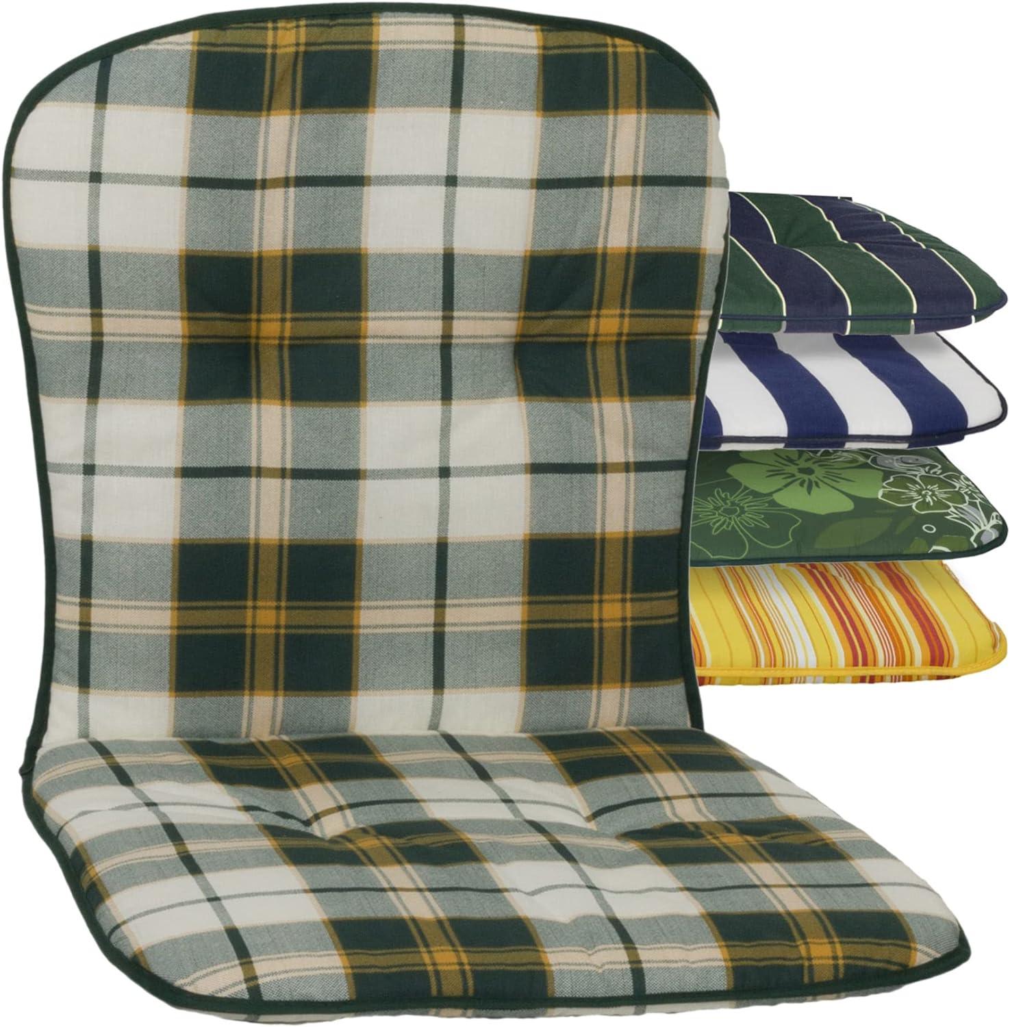 | Name | Beo Niedriglehner Auflagen Waschbar Kos | Made in EU nach Öko-Tex Standard | Atmungsaktive Stuhlauflage Niedriglehner | UV-beständige Auflagen Niedriglehner in Beige-Grün Kariert |