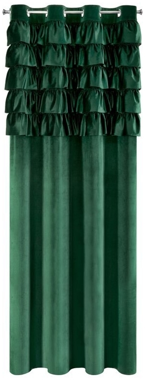 **Samtvorhang mit Rüschen im oberen Teil verziert** - **Breite:** 140 cm - **Länge:** 250 cm - **Farbe:** Dunkelgrün - **Gewicht:** 200 Gramm pro Quadratmeter - **Material:** 100% Polyester