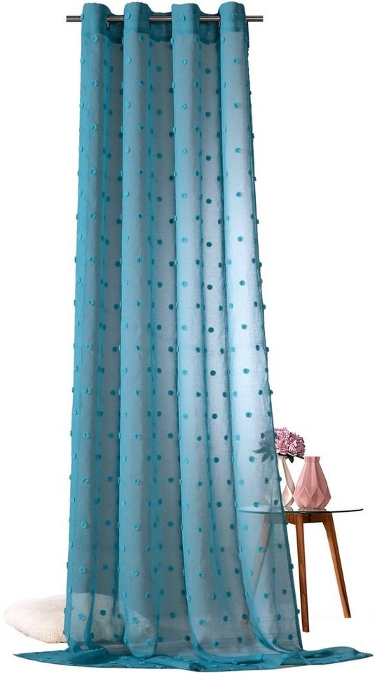in ÖsengardinenWeckbrodt Gardine Julina (1 St), Ösen, transparent, Microfaser, Leinen-Optik, transparent, mit Pompoms, Gardine, Store