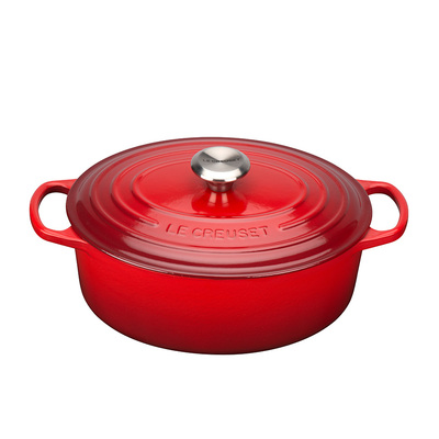 in OfenformenLe Creuset Signature Gusseisen-Bräter mit DeckelDurchmesser 35 cm, Oval, Für alle Herdarten und Induktion geeignet, Volumen: 8,9 l, Kirschrot