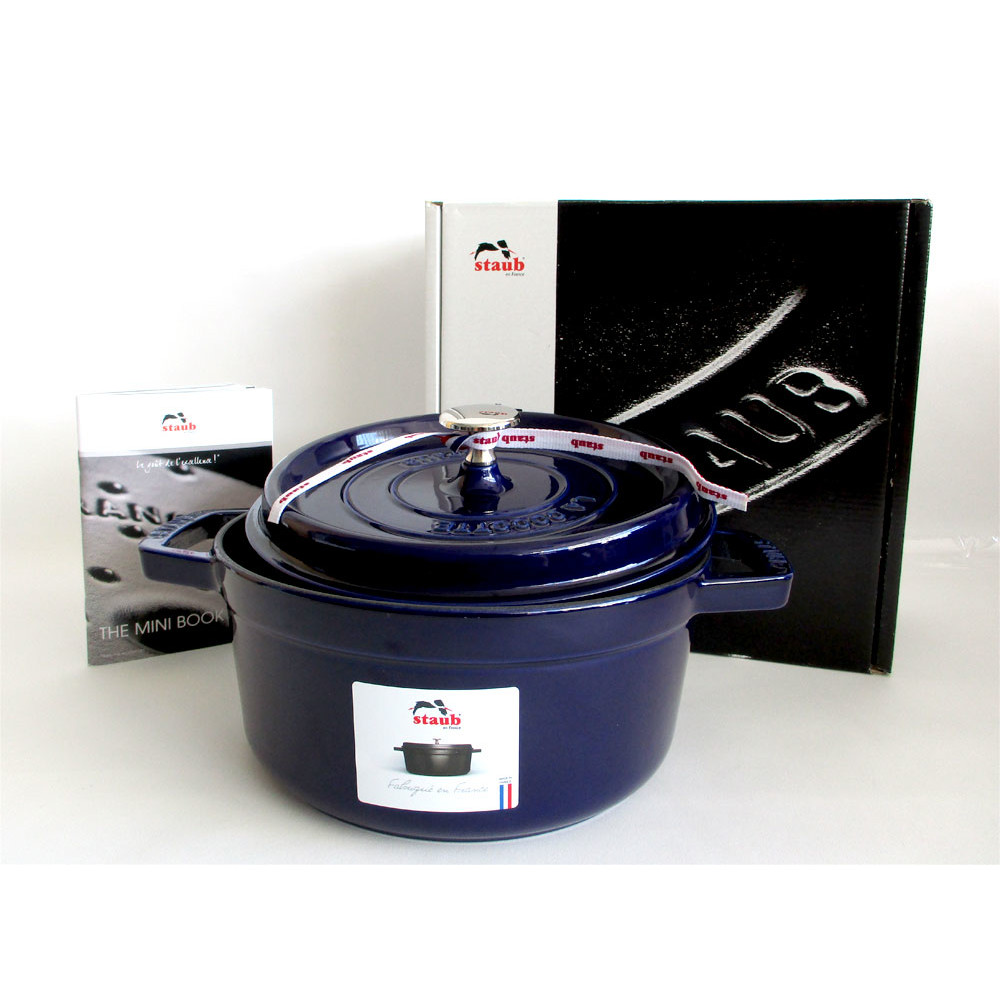 Staub 1102291 Cocotte-Bräter rund mit Deckel 22 cm, 2,6 L, mit mattschwarzer lierung im Inneren des Topfes, dunkelblau
