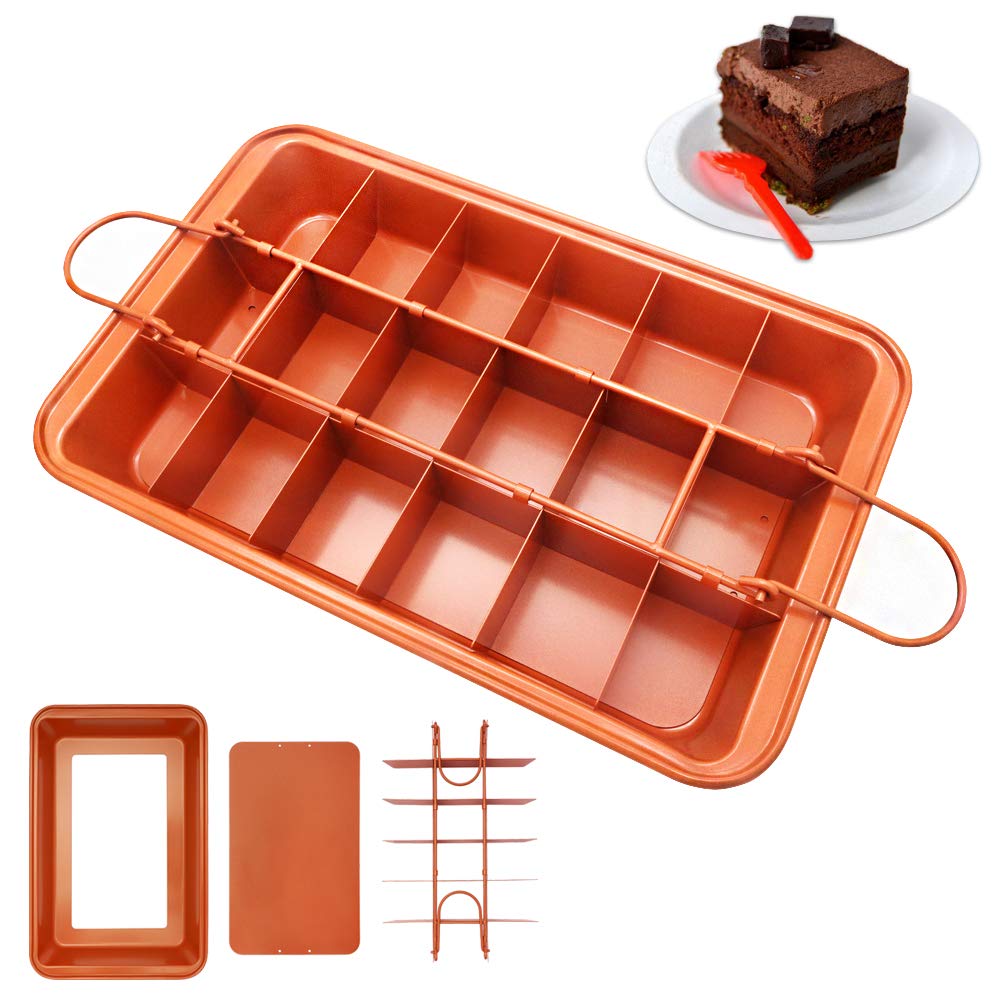 in OfenformenBrownie-Pfanne mit Trennwänden18 Mulden und 30,5 x 20,3 cm, Antihaftbeschichtung, geteilte Brownie-Pfanne , vorgeschnittene Brownie-Pfanne mit herausnehmbarem losem Boden für professionelle Scheiben, einfach zu lösen