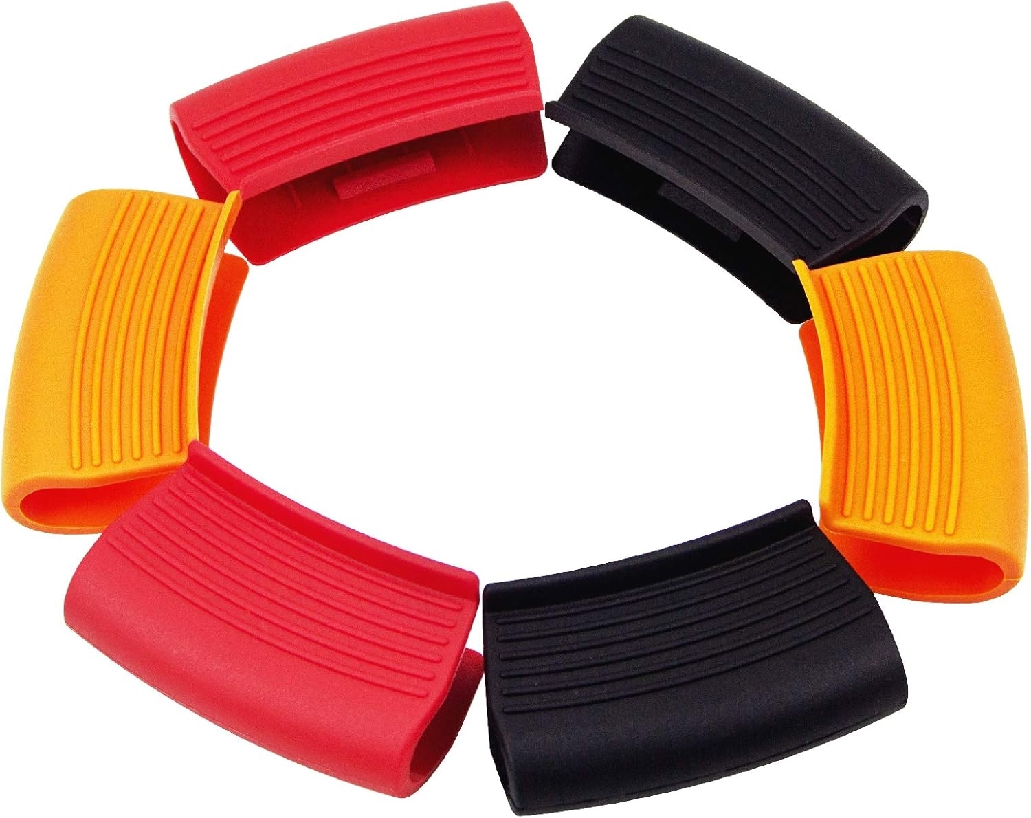 in Ofenhandschuhe6 Stück Silikon-unterstützte HeißgriffhalterTopflappenabdeckungen, rutschfeste Topflappenabdeckungen, hitzebeständige Topflappen, Kochgeschirrgriffe für Bratpfannen aus Gusseisen (Rot, Orange, Schwarz)