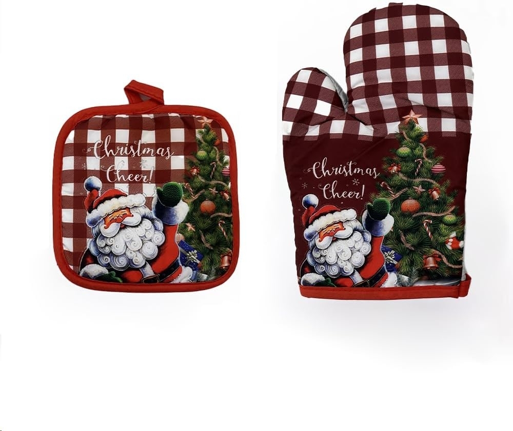 | Name | Christmas Joy Ofenhandschuh-Set, rot-weißes Buffalo-Karomuster mit Weihnachtsmann (Weihnachtsgrün) |