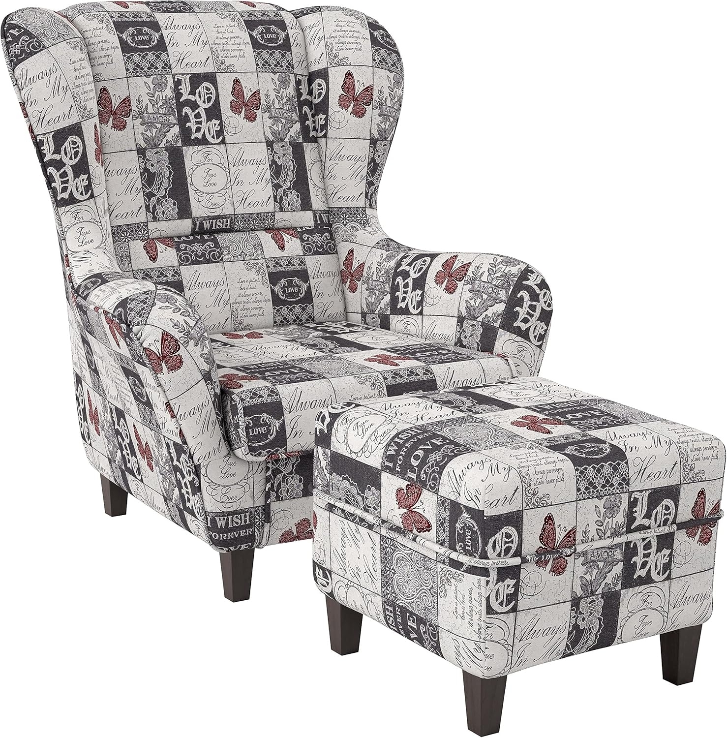 Supellex Ohrensessel mit Hocker Design Patchwork Love vereint hohe Qualität und modernes Design in harmonischen Proportionen. Der Sessel passt sich mühelos jedem Raumkonzept an und wird schnell zu Ihrem neuen Lieblingsplatz. Die üppige Polsterung und die hohe Rückenlehne bieten optimalen Komfort und Unterstützung. **Highlights** - Handgefertigte Polsterung für hohe Bequemlichkeit - Hohe Rückenlehne zur Unterstützung der Rückenpartie - Füße aus massivem, transparent lackiertem Buchenholz - Belastbarkeit bis 120 kg für Robustheit - Rückseitig mit originalem Obermaterial bezogen **Produkteigenschaften** - Bezugsmaterial: 68 % Polyacryl, 32 % Polyester - Breite: 92 cm - Gesamthöhe: 108 cm - Tiefe: 92 cm - Sitzhöhe: 45 cm - Gesamtgewicht: 30 kg