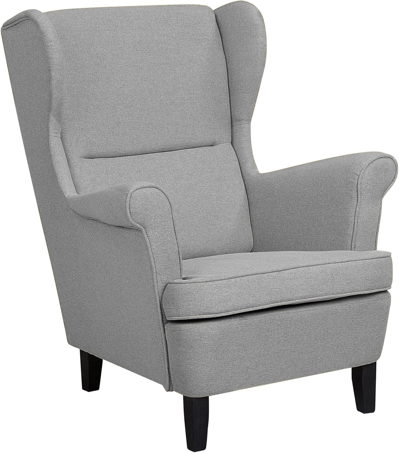 Gemütlicher Ohrensessel ABSON in elegantem Grau. Geborgenheit und Gemütlichkeit stehen im Fokus dieses bequemen Sessels mit komfortablen Ausbuchtungen an der Rückenlehne und abgerundeten Armlehnen. Die dicke Polsterung sorgt für höchsten Komfort. Mit klassischen Einrichtungsstilen harmoniert dieser Relax-Sessel perfekt. **Highlights** - Dicke Polsterung für maximalen Komfort: Die großzügige Polsterung sorgt für ein angenehmes Sitzgefühl. - Entspannte Sitzposition: Die ergonomische Gestaltung ermöglicht eine entspannte Haltung. - Retro Stil: Das Design des Sessels verleiht ihm einen nostalgischen Charme. - Warme, elegante Farbe: Das Grau des Polsterbezugs strahlt Eleganz aus. - Qualitativ hochwertiges Material: Der Sessel besteht aus strapazierfähigen und langlebigen Materialien. **Produkteigenschaften** - Typ: Ohrensessel - Stil: Klassisch - Farbe: Grau - Material: Polyester, Nylon, Massivholz - Füllmaterial: Schaumstoff - Sitzmaterial: Stoff - Sitzkonstruktion: Wellenfederung - Schaumstoffdichte: 50 kg/m3 - Armlehnen: Abgerundet, Ja - Muster: Kein Muster - Neigbar: Nein - Höhe Armlehnen: 71 cm - Tiefe: 63 cm - Dicke der Polsterauflagen: 9 cm - Sitzhöhe: 44 cm - Breite: 74 cm - Höhe: 102 cm - Sitzfläche: 65x54 cm - Gewicht: 24 kg - Max. Belastung: 100 kg Sie kaufen: 1 x Sessel Montage: Nicht montiert. 5 - 15 Min. Zusatzinformationen: Zur Sicherstellung der Stabilität und Nutzungssicherheit empfiehlt es sich, die Konstruktion regelmäßig zu überprüfen. Pflegeanleitung: **Polyester:** 1. Oberflächen vorsichtig absaugen 2. Flecken mit Polsterreiniger oder milden Reinigungsmitteln entfernen **Gummibaumholz:** 1. Milde Reinigungsmittel und weiche Tücher verwenden 2. Bei geölten Holzartikeln regelmäßig nachölen 3. Feuchte Stellen sofort trocken reiben und Dauernässe vermeiden.