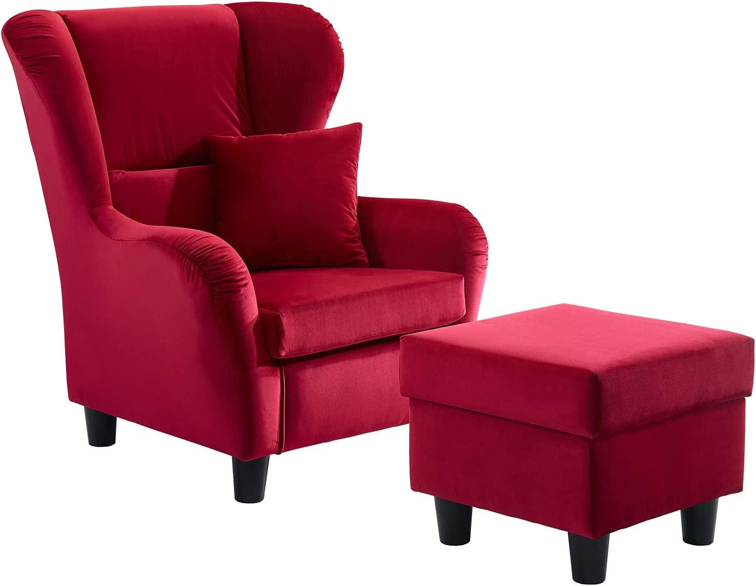| Name | lifestyle4living Ohrensessel mit Hocker in rotem Samt bezogen | Der perfekte Polstersessel für entspannte, Lange Fernseh- und Leseabende. Abschalten und genießen! |