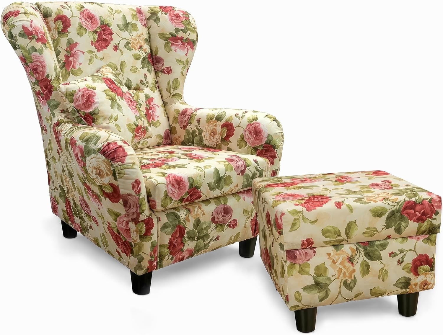 | Name | lifestyle4living Ohrensessel mit Hocker mit Webstoff Blumenmuster bezogen | Der perfekte Polstersessel für entspannte, Lange Fernseh- und Leseabende. |